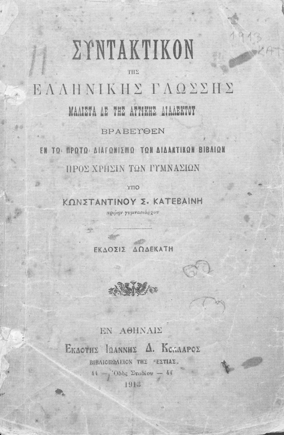 Συντακτικόν της ελληνικής γλώσσης μάλιστα δε της αττικής διαλέκτου προς χρήσιν των Γυμνασίων