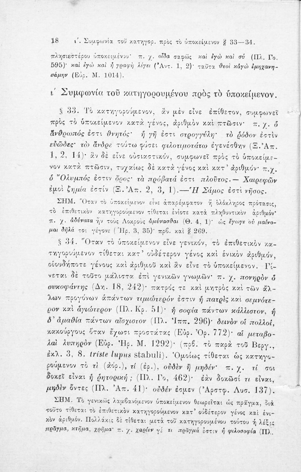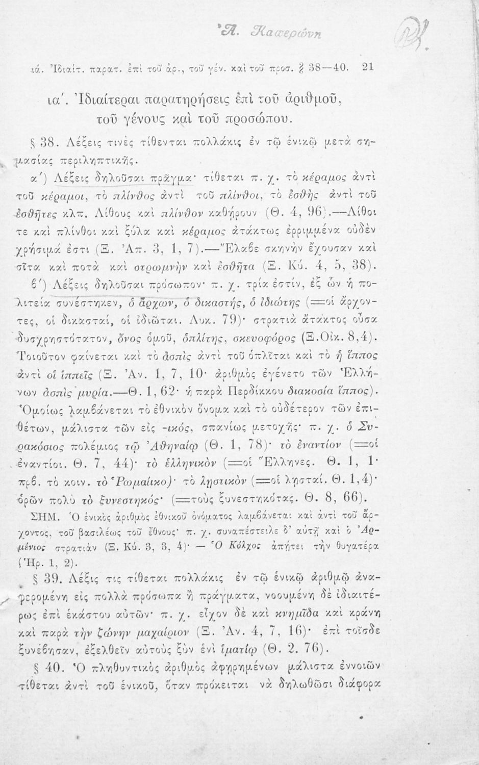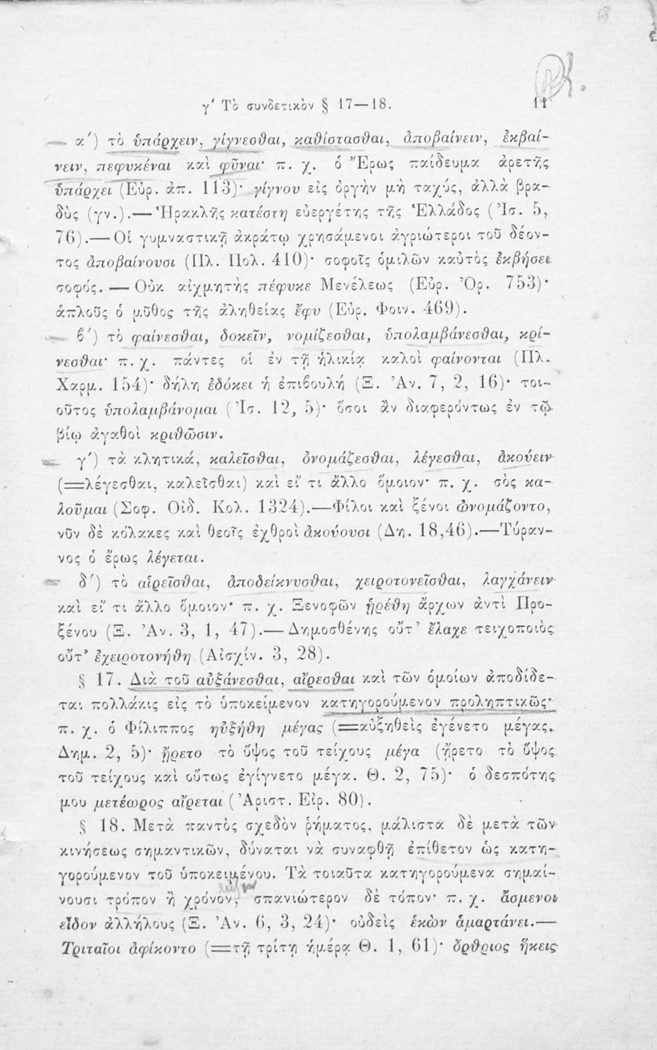 Σχολικό εγχειρίδιο Αρχαίων Ελληνικών για τα Ελληνικά Σχολεία και τα Ανώτερα Παρθεναγωγεία που εξετάζει τα μέρη του λόγου και την σύνταξή τους.