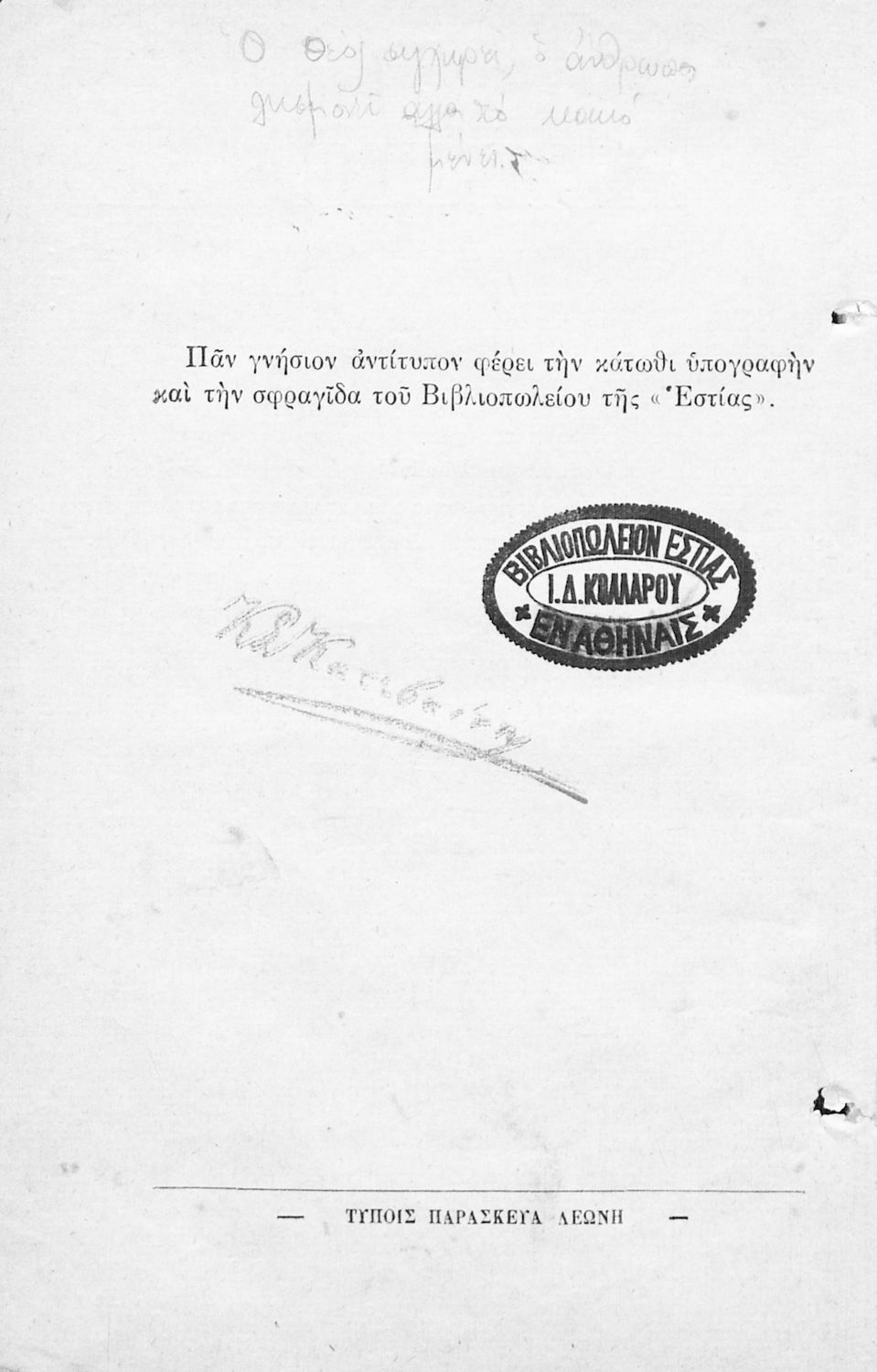 Εντοπισμός πρωτοτύπου: Ελληνικό Λογοτεχνικό και Ιστορικό Αρχείο