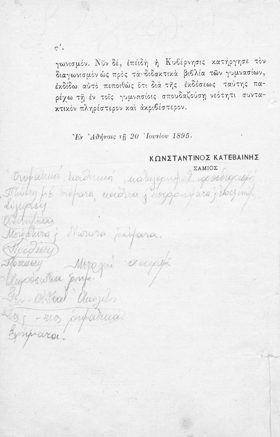 Τάξη:  Ελληνικό Σχολείο / Παρθεναγωγείο / Γυμνάσιο