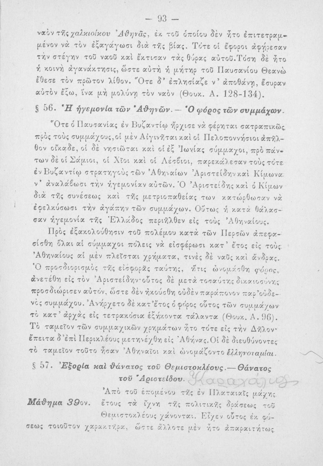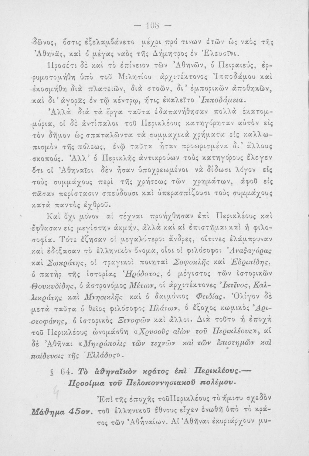 Σχολικό εγχειρίδιο Ιστορίας Α΄ Ελληνικού και Παρθεναγωγείου που καλύπτει την περίοδο από τους μυθικούς και ηρωικούς χρόνους μέχρι την μάχη της Μαντινείας και τον θάνατο του Επαμεινώνδα.