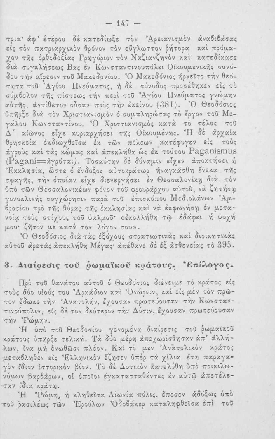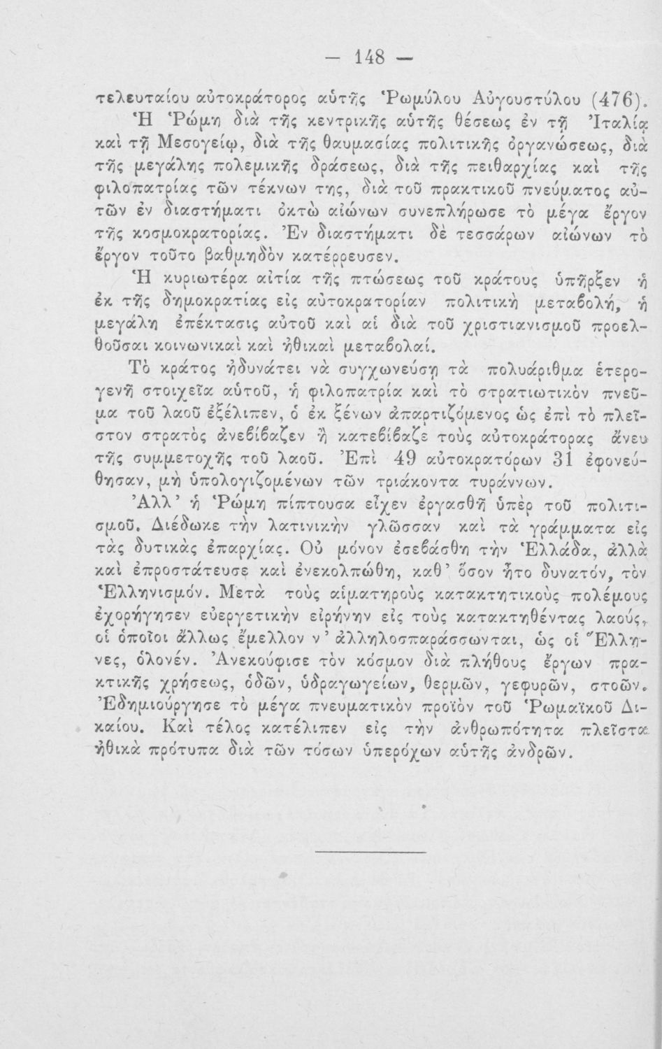 Ιστορία ελληνική και ρωμαϊκή από της εν Ιψώ μάχης και των αρχών της Ρώμης μέχρι του θανάτου του Θεοδοσίου του Μεγάλου προς χρήσιν της Β΄ τάξεως του γυμνασίου