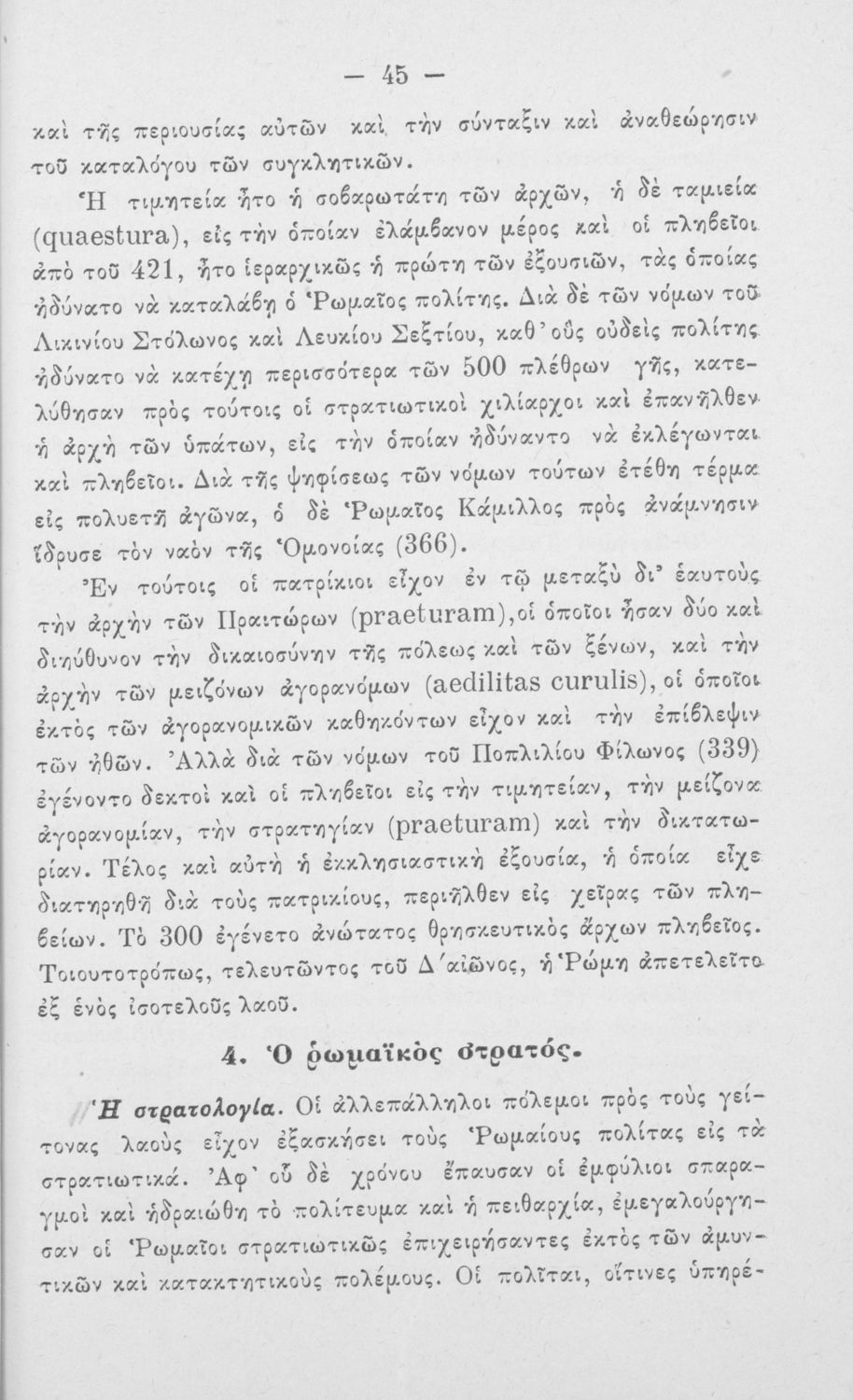 LDR 01517 2200193 4500 035 ## _a02-02128 040 ## _aΕλληνικό Λογοτεχνικό και Ιστορικό Αρχείο 041 ## _ael 100 ## _aΚ. Σ. Γούναρης 110 ## _a2128 245 0# _aΙστορία ελληνική και ρωμαϊκή από της εν Ιψώ μάχης και των αρχών της Ρώμης μέχρι του θανάτου του Θεοδοσίου του Μεγάλου προς χρήσιν της Β΄ τάξεως του γυμνασίου 260 ## _aΑθήνα _bΙωάννης Δ. Κολλάρος, Βιβλιοπωλείο της "Εστίας" _c1913 300 ## _a162 520 ## _aΣχολικό εγχειρίδιο Ιστορίας Β΄ Γυμνασίου που καλύπτει την περίοδο από την κατάρρευση της Μακεδονικής Ηγεμονίας μέχρι τα χρόνια του Μ. Κωνσταντίνου και του Θεοδοσίου του Μεγάλου. Περιέχει χρονολογικό πίνακα των πιο σημαντικών γεγονότων, εικόνες και χάρτες. 521 ## _aΒ' Γυμνασίου 522 ## _aΕλλάδα 546 ## _aΚαθαρεύουσα 563 ## _aΣκληρό Εξώφυλλο 650 #4 _aΘεοδόσιος _aΚαρχηδονιακοί πόλεμοι _aΜ Κωνσταντίνος _aΟκταβιανός _aΡωμαίοι αυτοκράτορες _aΡώμη _aΧριστιανισμός