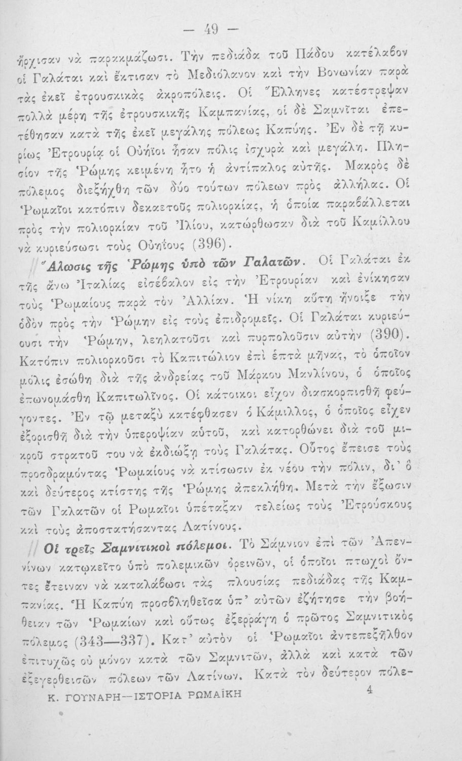Κωδικός αναγνώρισης: 02-02128 Τίτλος: Ιστορία ελληνική και ρωμαϊκή από της εν Ιψώ μάχης και των αρχών της Ρώμης μέχρι του θανάτου του Θεοδοσίου του Μεγάλου προς χρήσιν της Β΄ τάξεως του γυμνασίου Συγγραφέας: Κ. Σ. Γούναρης Μέγεθος και υπόστρωμα: Σχολικό εγχειρίδιο, σκληρό εξώφυλλο, 162 σελίδες. |