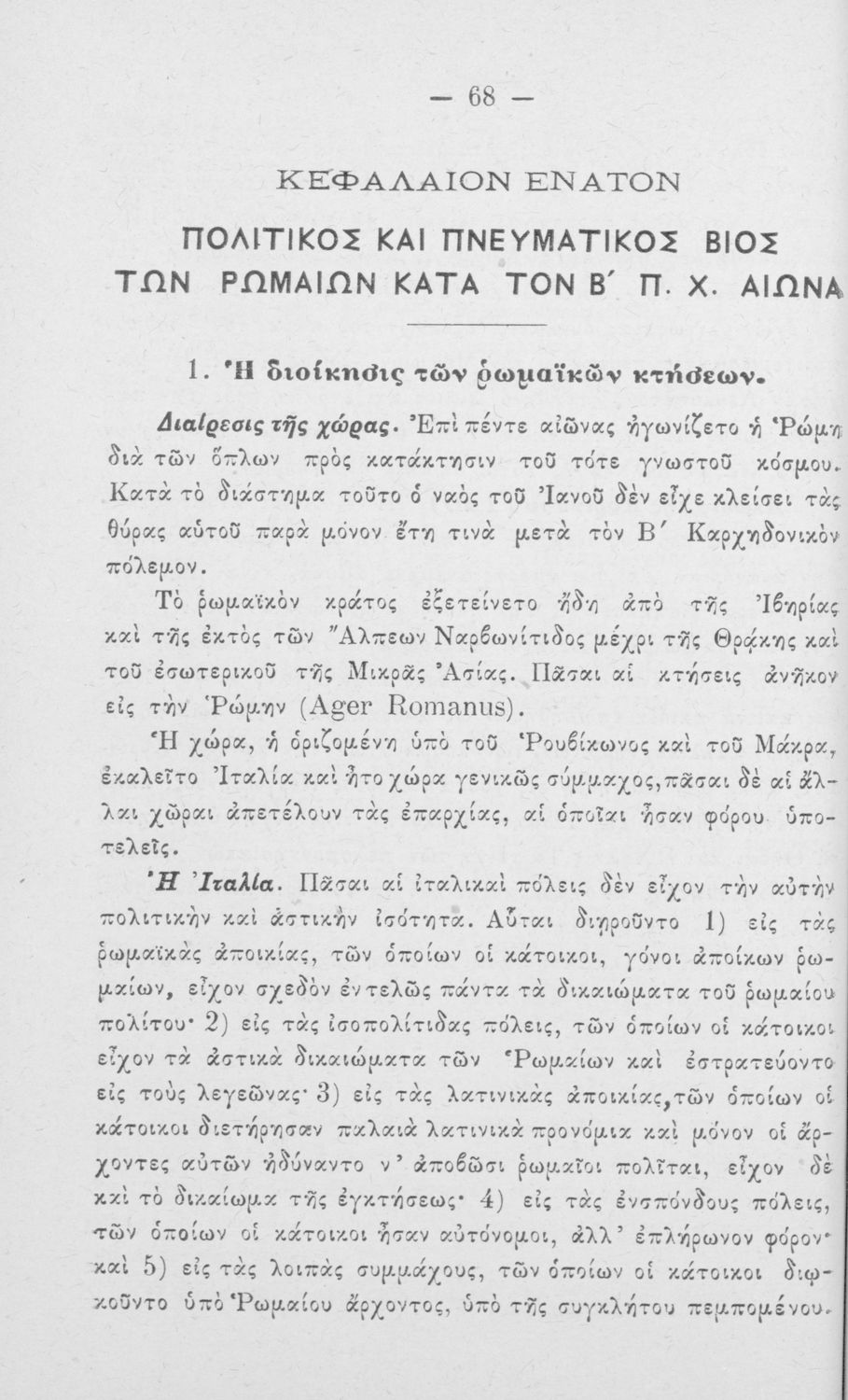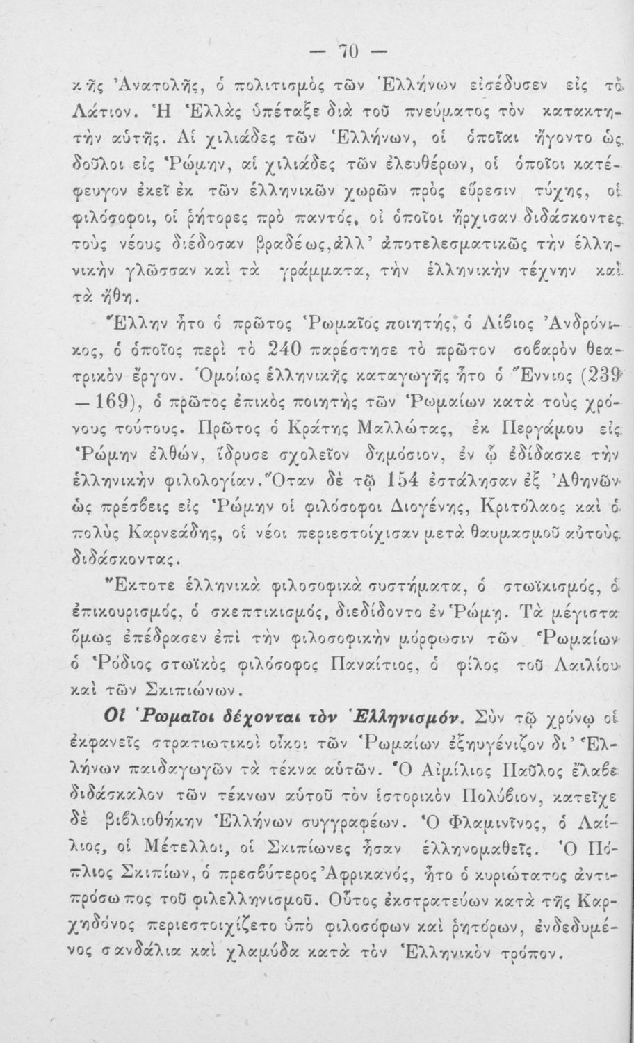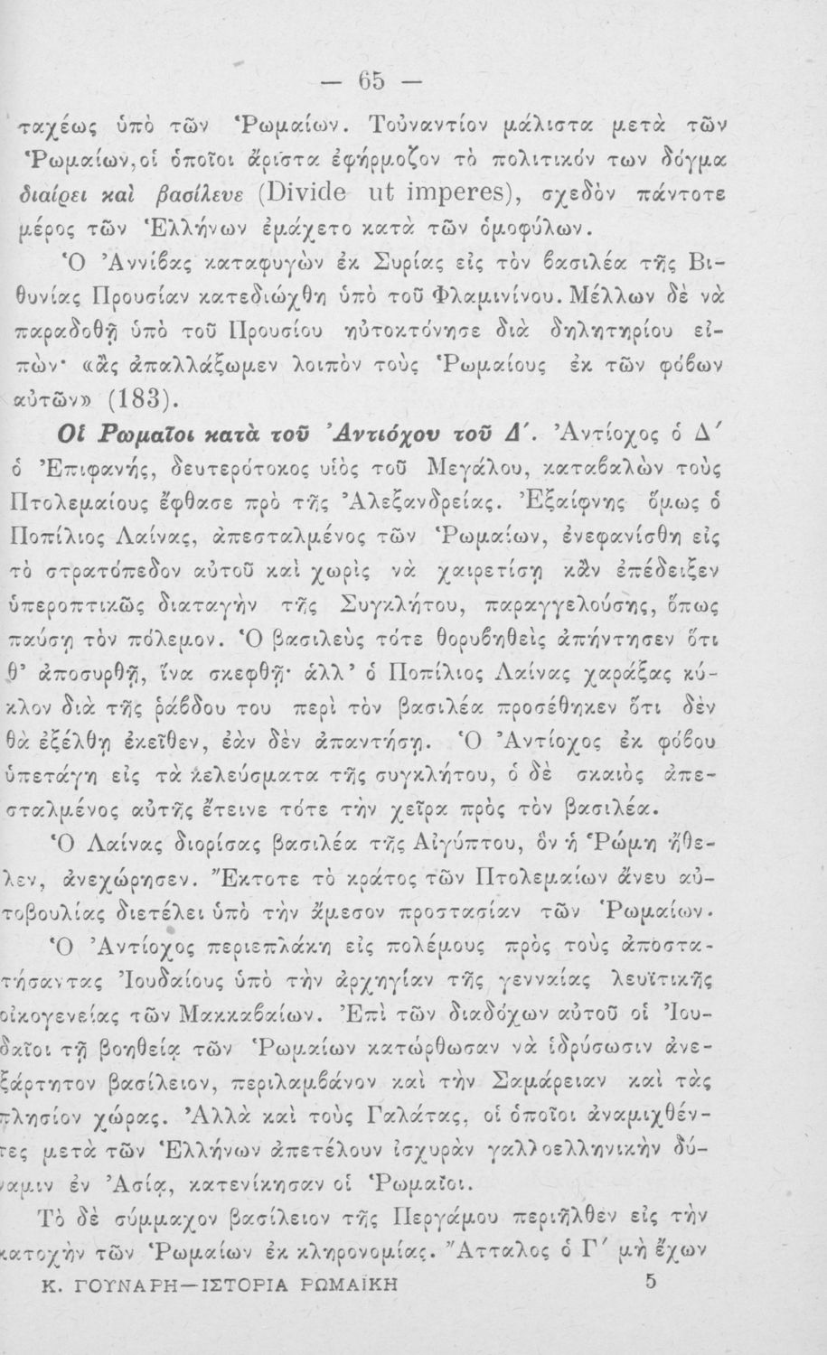 Ιστορία ελληνική και ρωμαϊκή από της εν Ιψώ μάχης και των αρχών της Ρώμης μέχρι του θανάτου του Θεοδοσίου του Μεγάλου προς χρήσιν της Β΄ τάξεως του γυμνασίου