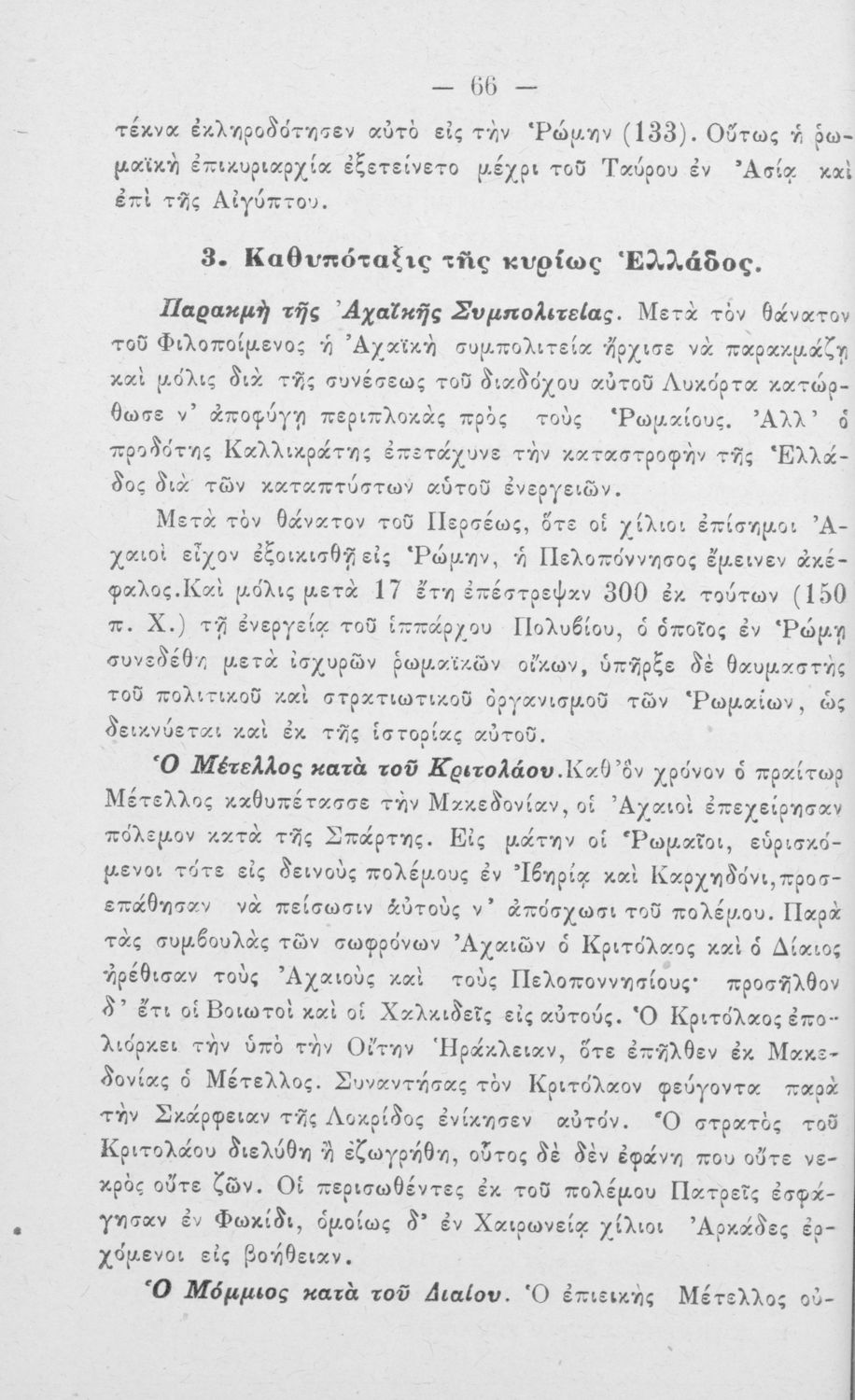 Τίτλος: Ιστορία ελληνική και ρωμαϊκή από της εν Ιψώ μάχης και των αρχών της Ρώμης μέχρι του θανάτου του Θεοδοσίου του Μεγάλου προς χρήσιν της Β΄ τάξεως του γυμνασίου