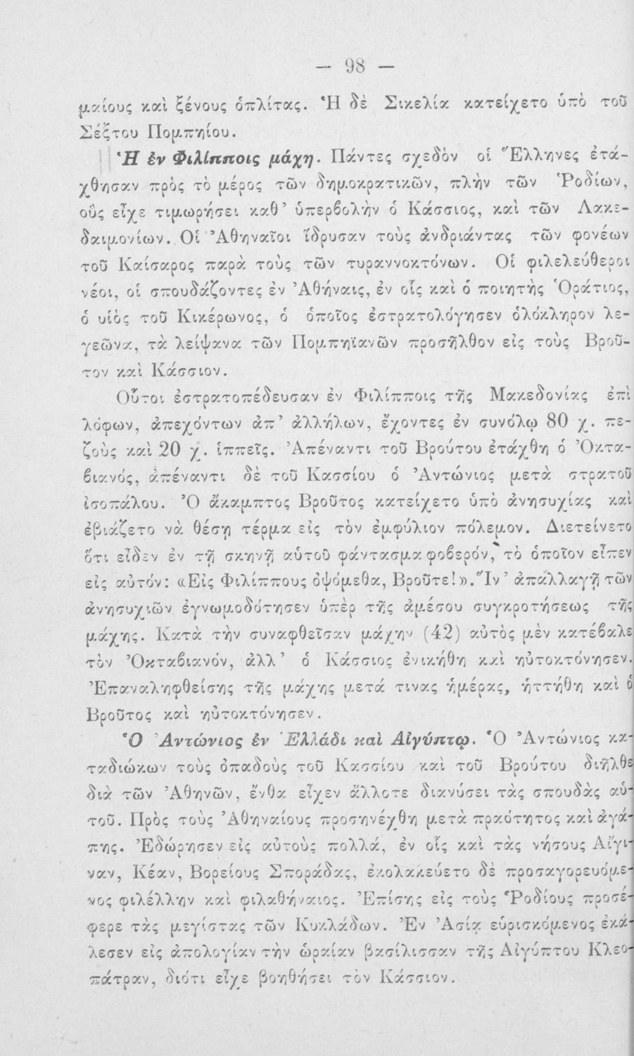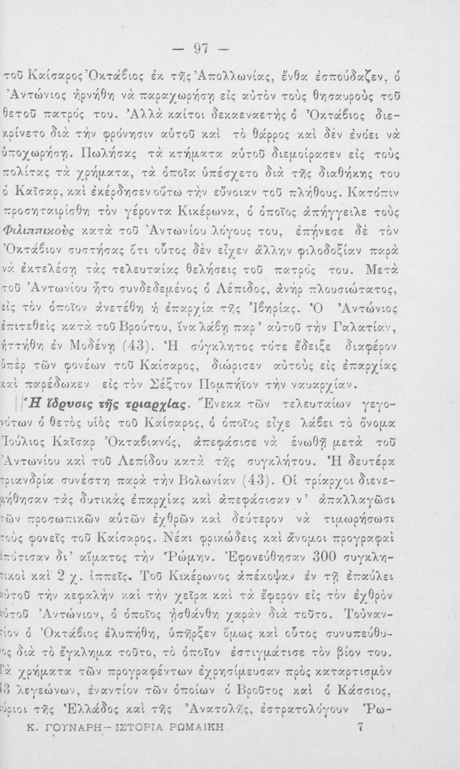 LDR 01517 2200193 4500 035 ## _a02-02128 040 ## _aΕλληνικό Λογοτεχνικό και Ιστορικό Αρχείο 041 ## _ael 100 ## _aΚ. Σ. Γούναρης 110 ## _a2128 245 0# _aΙστορία ελληνική και ρωμαϊκή από της εν Ιψώ μάχης και των αρχών της Ρώμης μέχρι του θανάτου του Θεοδοσίου του Μεγάλου προς χρήσιν της Β΄ τάξεως του γυμνασίου 260 ## _aΑθήνα _bΙωάννης Δ. Κολλάρος, Βιβλιοπωλείο της "Εστίας" _c1913 300 ## _a162 520 ## _aΣχολικό εγχειρίδιο Ιστορίας Β΄ Γυμνασίου που καλύπτει την περίοδο από την κατάρρευση της Μακεδονικής Ηγεμονίας μέχρι τα χρόνια του Μ. Κωνσταντίνου και του Θεοδοσίου του Μεγάλου. Περιέχει χρονολογικό πίνακα των πιο σημαντικών γεγονότων, εικόνες και χάρτες. 521 ## _aΒ' Γυμνασίου 522 ## _aΕλλάδα 546 ## _aΚαθαρεύουσα 563 ## _aΣκληρό Εξώφυλλο 650 #4 _aΘεοδόσιος _aΚαρχηδονιακοί πόλεμοι _aΜ Κωνσταντίνος _aΟκταβιανός _aΡωμαίοι αυτοκράτορες _aΡώμη _aΧριστιανισμός