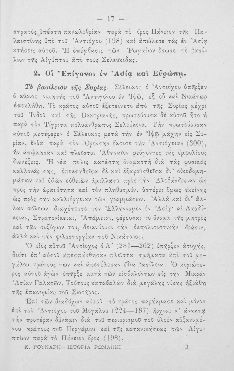 Βαθμίδα εκπαίδευσης: Δευτεροβάθμια Τάξη: Β' Γυμνασίου Μάθημα: Ιστορία Γλώσσα: Καθαρεύουσα Παρουσίαση περιεχομένου: Σχολικό εγχειρίδιο Ιστορίας Β΄ Γυμνασίου που καλύπτει την περίοδο από την κατάρρευση της Μακεδονικής Ηγεμονίας μέχρι τα χρόνια του Μ. Κωνσταντίνου και του Θεοδοσίου του Μεγάλου. Περιέχει χρονολογικό πίνακα των πιο σημαντικών γεγονότων, εικόνες και χάρτες. |
