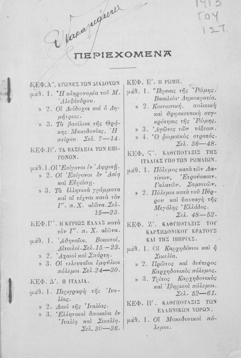 LDR 01517 2200193 4500 035 ## _a02-02128 040 ## _aΕλληνικό Λογοτεχνικό και Ιστορικό Αρχείο 041 ## _ael 100 ## _aΚ. Σ. Γούναρης 110 ## _a2128 245 0# _aΙστορία ελληνική και ρωμαϊκή από της εν Ιψώ μάχης και των αρχών της Ρώμης μέχρι του θανάτου του Θεοδοσίου του Μεγάλου προς χρήσιν της Β΄ τάξεως του γυμνασίου 260 ## _aΑθήνα _bΙωάννης Δ. Κολλάρος, Βιβλιοπωλείο της "Εστίας" _c1913 300 ## _a162 520 ## _aΣχολικό εγχειρίδιο Ιστορίας Β΄ Γυμνασίου που καλύπτει την περίοδο από την κατάρρευση της Μακεδονικής Ηγεμονίας μέχρι τα χρόνια του Μ. Κωνσταντίνου και του Θεοδοσίου του Μεγάλου. Περιέχει χρονολογικό πίνακα των πιο σημαντικών γεγονότων, εικόνες και χάρτες. 521 ## _aΒ' Γυμνασίου 522 ## _aΕλλάδα 546 ## _aΚαθαρεύουσα 563 ## _aΣκληρό Εξώφυλλο 650 #4 _aΘεοδόσιος _aΚαρχηδονιακοί πόλεμοι _aΜ Κωνσταντίνος _aΟκταβιανός _aΡωμαίοι αυτοκράτορες _aΡώμη _aΧριστιανισμός