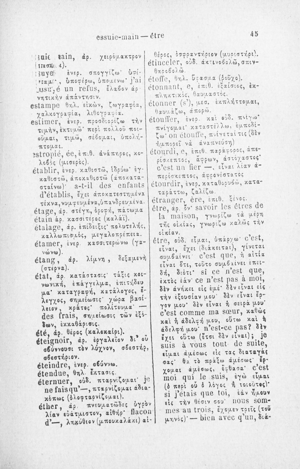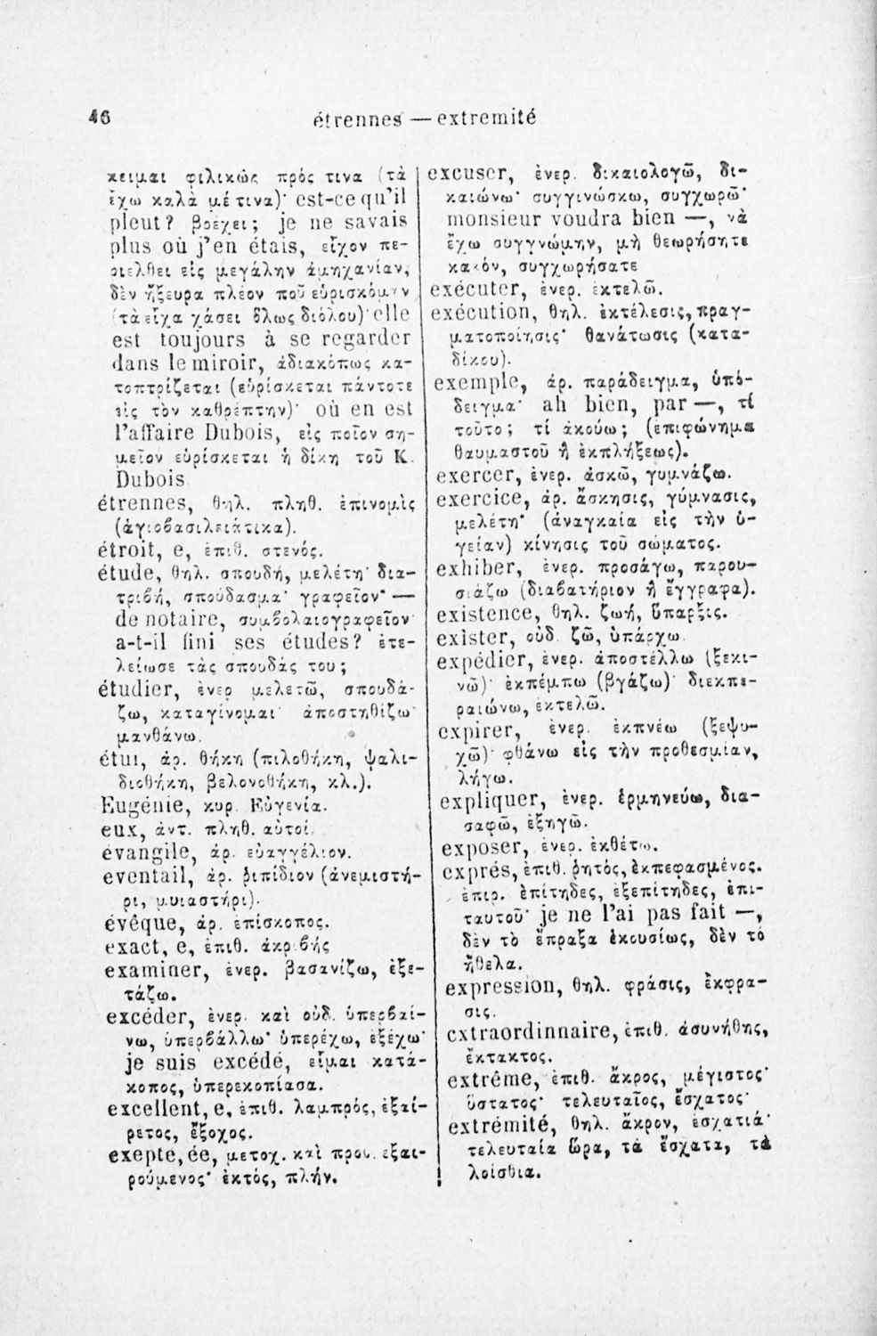 Κωδικός αναγνώρισης: 02-02129 Τίτλος: L΄ echo de Paris, Η Ηχώ των Παρισίων, ήτοι πρακτική άσκησις εις το γαλλιστί διαλέγεσθαι κατά την γερμανικήν μέθοδον του Ferninand Fliessbach, δια ρήσεων αδιαλείπτως ακουομένων εν Παρισίοις, μετά της ελληνικής ερμηνείας των εν τω κειμένω λέξεων και ιδιωματικών φράσεων Συγγραφέας: Μάξιμος Δ. Δασκαλάκης (μετάφραση- επιμέλεια) Μέγεθος και υπόστρωμα: Παιδαγωγικό βοήθημα, σκληρό εξώφυλλο, 312 σελίδες. |