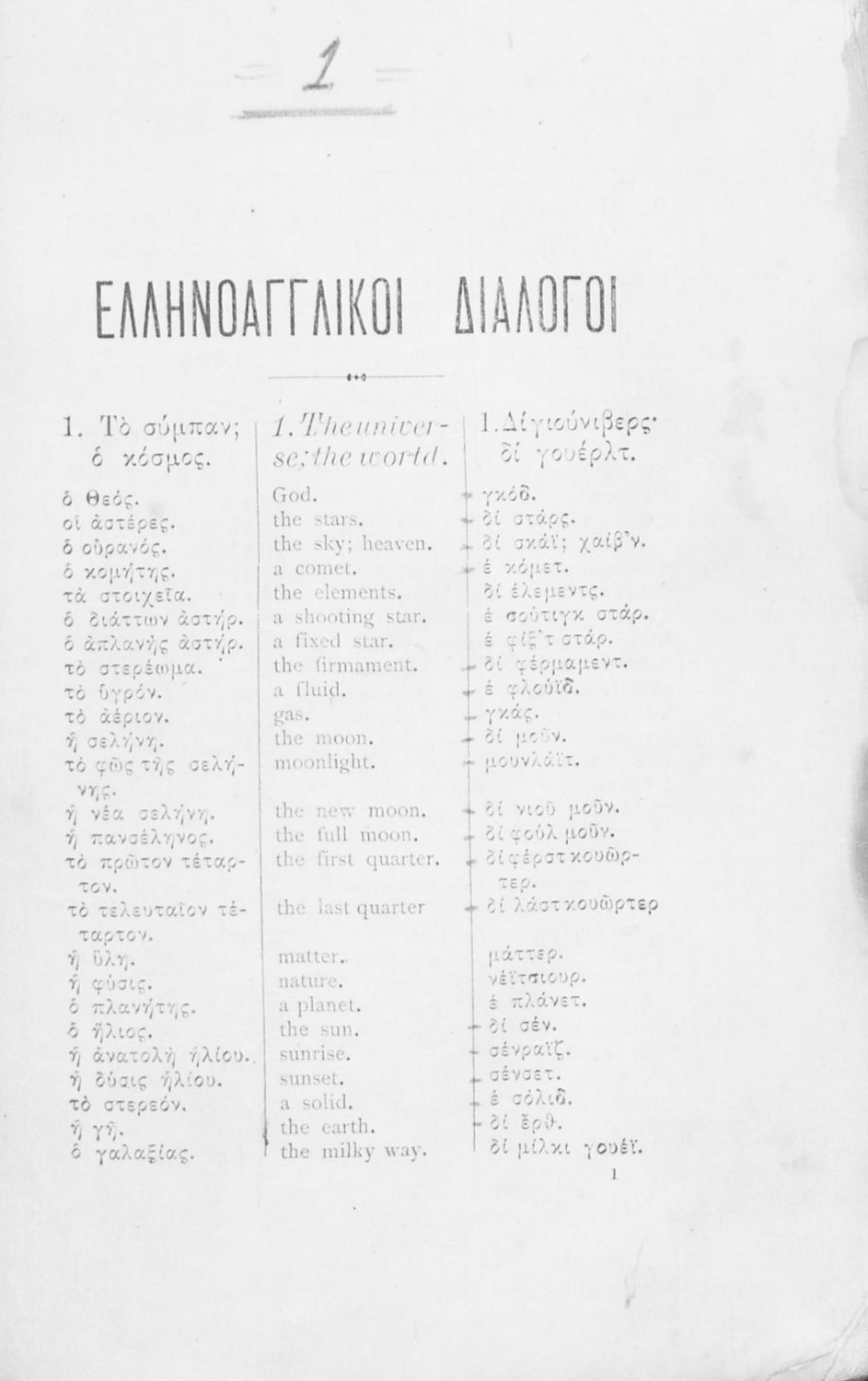 520 ## _aΜαθητικό βοήθημα Αγγλικών που περιλαμβάνει λέξεις και φράσεις στα ελληνικά και αγγλικά και την προφορά τους. Περιέχει και υποδείγματα επιστολών και σύντομες συνομιλίες.