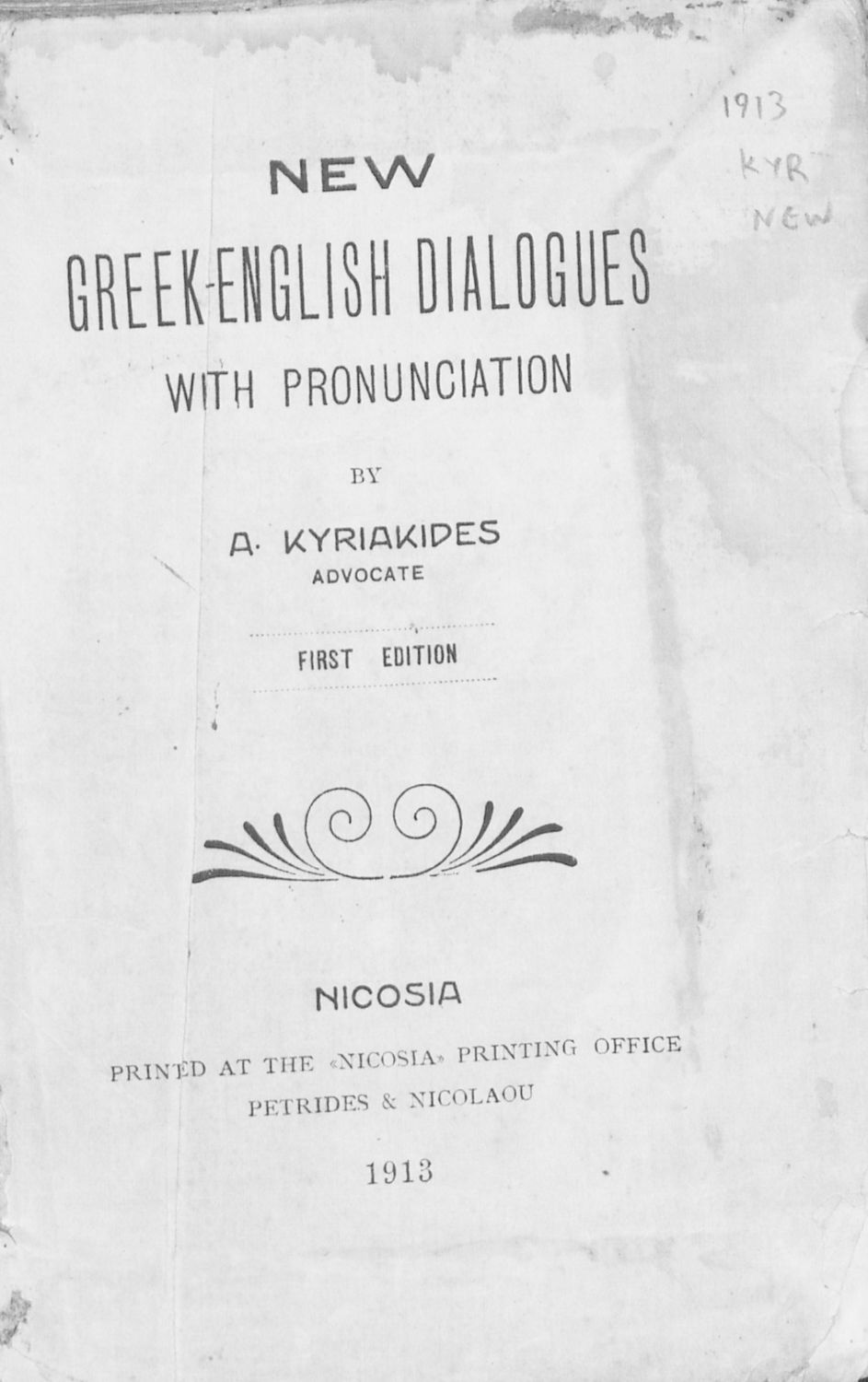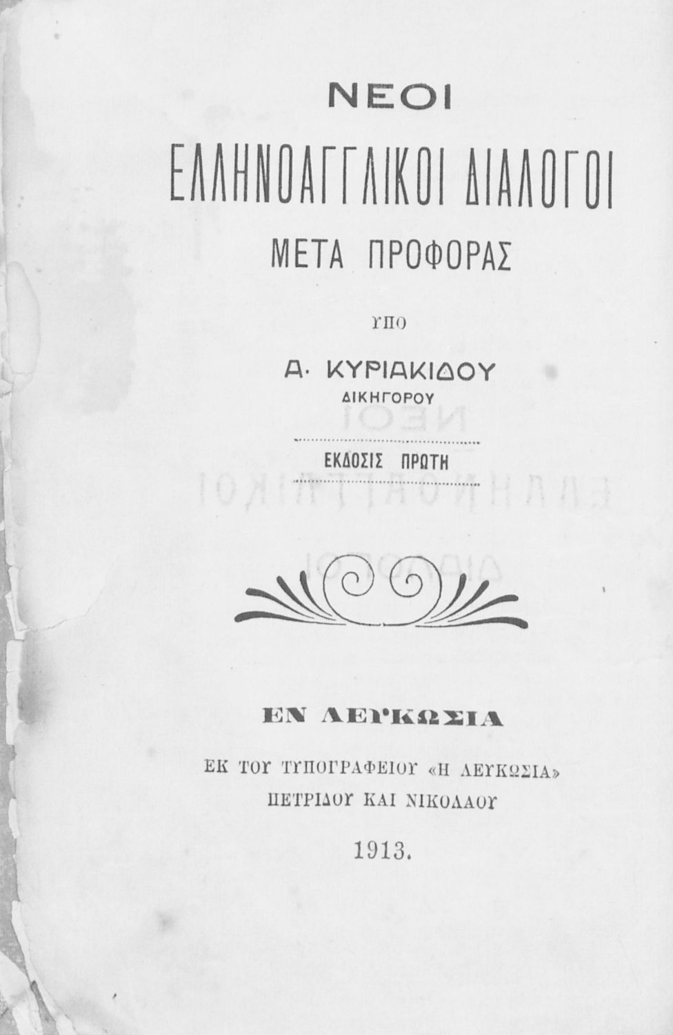 Εκδότης: Τυπογραφείο Η Λευκωσία-Πετρίδης, Νικολάου Έτος έκδοσης: 1913 Τόπος έκδοσης: Λευκωσία Έκδοση: 1η |
