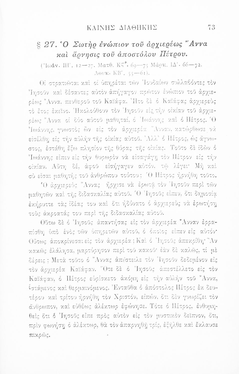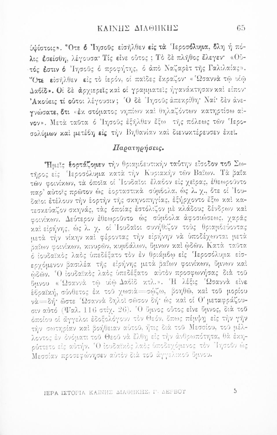 Σχολικό εγχειρίδιο Θρησκευτικών για τα Ελληνικά Σχολεία και τα Παρθεναγωγεία που περιλαμβάνει την ιστορία της Καινής Διαθήκης από τον Ευαγγελισμό της Θεοτόκου μέχρι την ανάληψη του Ιησού Χριστού