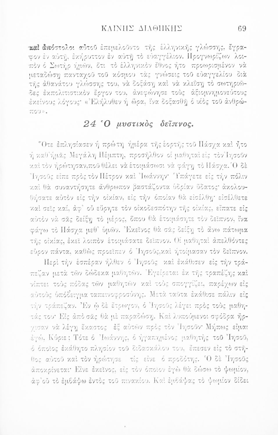 Σχολικό εγχειρίδιο Θρησκευτικών για τα Ελληνικά Σχολεία και τα Παρθεναγωγεία που αποτελεί μια εξιστόρηση της Καινής Διαθήκης από την γέννηση του Ιησού Χριστού ως το έργο των Αποστόλων