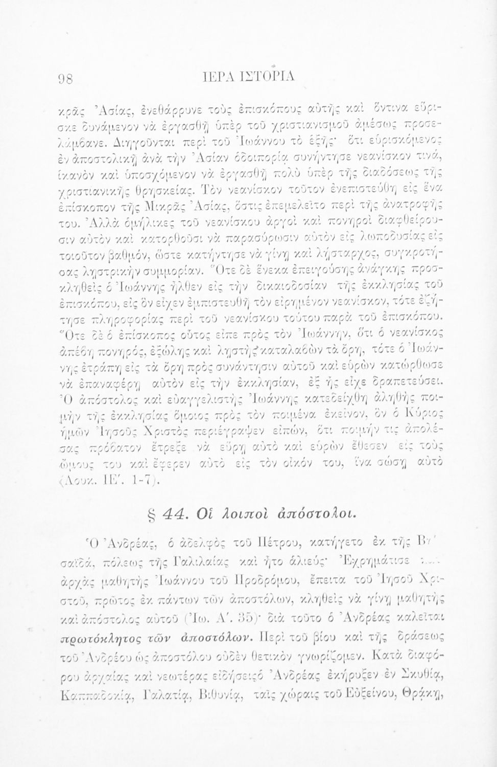 Σχολικό εγχειρίδιο Θρησκευτικών για τα Ελληνικά Σχολεία και τα Παρθεναγωγεία που αποτελεί μια εξιστόρηση της Καινής Διαθήκης από την γέννηση του Ιησού Χριστού ως το έργο των Αποστόλων