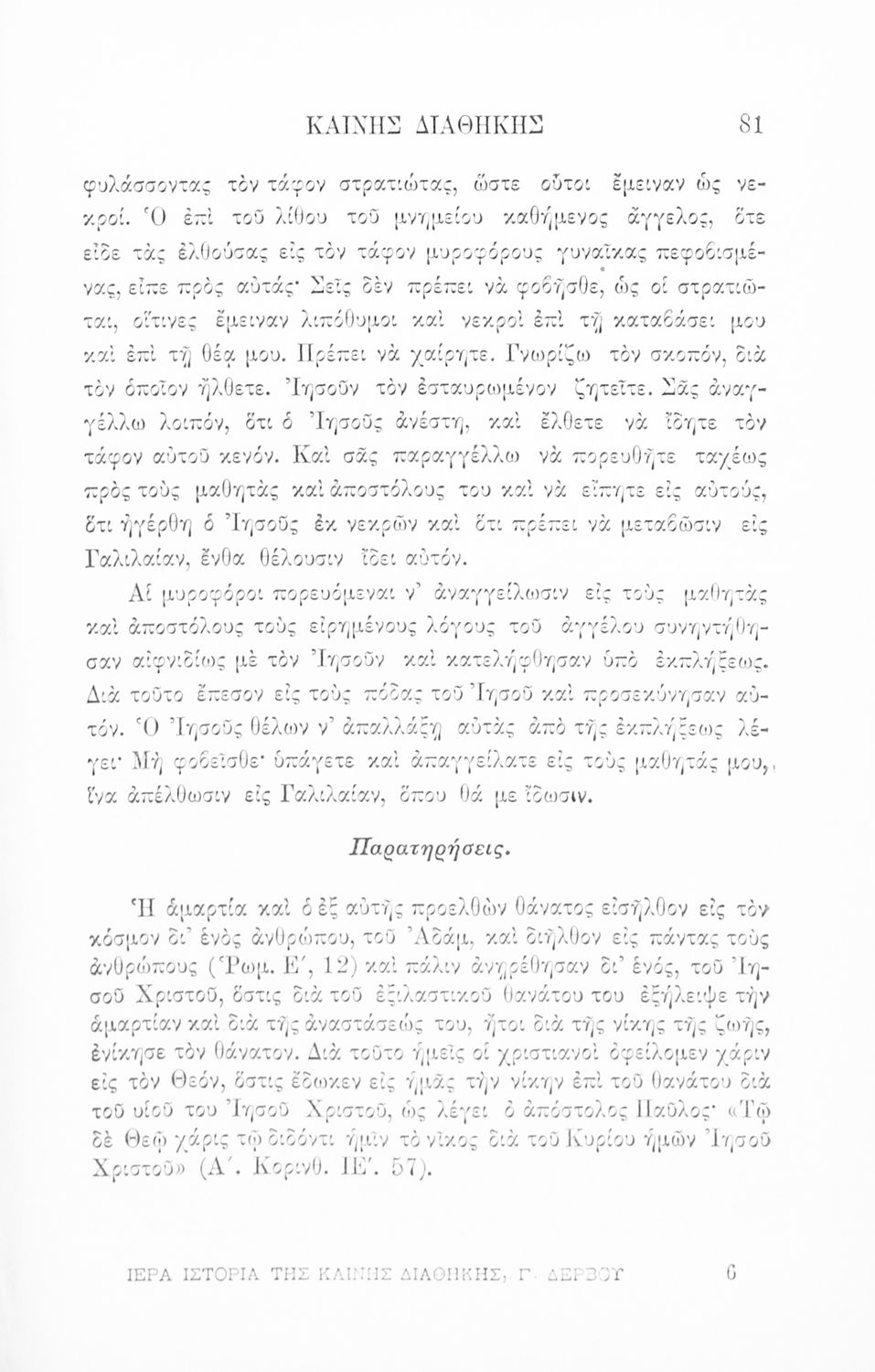 Σχολικό εγχειρίδιο Θρησκευτικών για τα Ελληνικά Σχολεία και Παρθεναγωγεία που συνιστά μία εξιστόρηση της Καινής Διαθήκης από τη γέννηση της Θεοτόκου ως την ανάληψη του Χριστού και τη δράση των Αποστόλων.