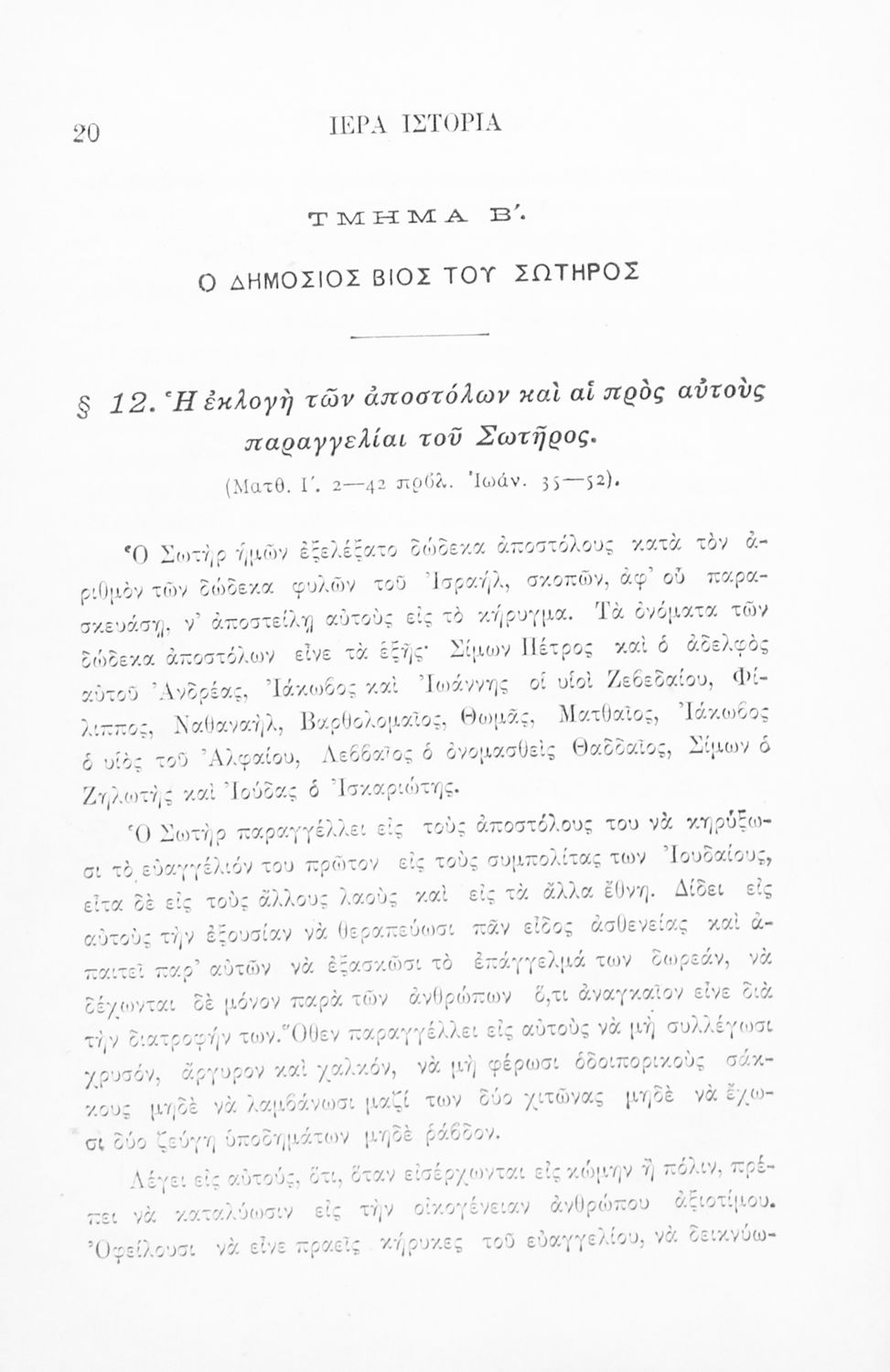 Βαθμίδα εκπαίδευσης: Δευτεροβάθμια Τάξη: Β' Ελληνικού Σχολείου Μάθημα: Θρησκευτικά Γλώσσα: Καθαρεύουσα Παρουσίαση περιεχομένου: Σχολικό εγχειρίδιο Θρησκευτικών Β' Ελληνικού Σχολείου που συνιστά μία εξιστόρηση της Καινής Διαθήκης από τη γέννηση της Θεοτόκου ως την ανάληψη του Χριστού και τη δράση των Αποστόλων. |