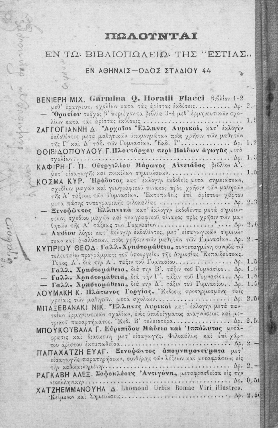Τάξη:  Γ' Γυμνασίου / Α' Διδασκαλείου Αρρένων / Β' Διδασκαλείων Θηλέων