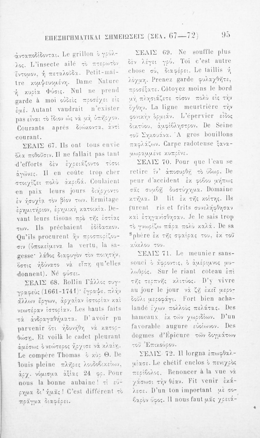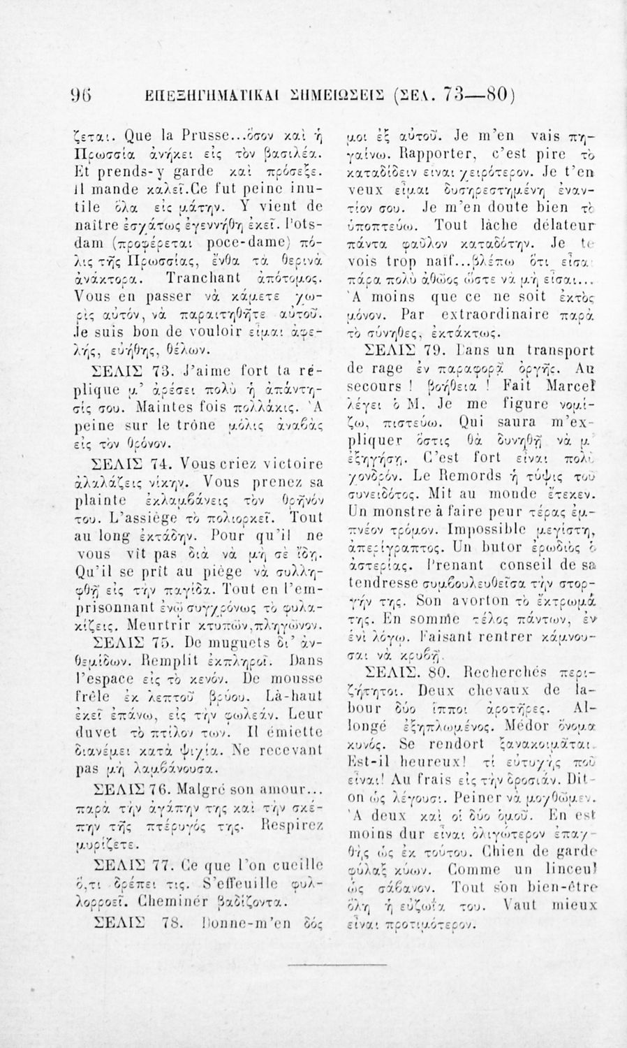 Σχολικό εγχειρίδιο Γαλλικών για τις Γ΄ Γυμνάσιου, Β΄ Διδασκαλείου Θηλέων και Α' Διδασκαλείου Αρρένων που περιέχει αποσπάσματα έργων Γάλλων συγγραφέων, και γλωσσικά και ερμηνευτικά σχόλια.