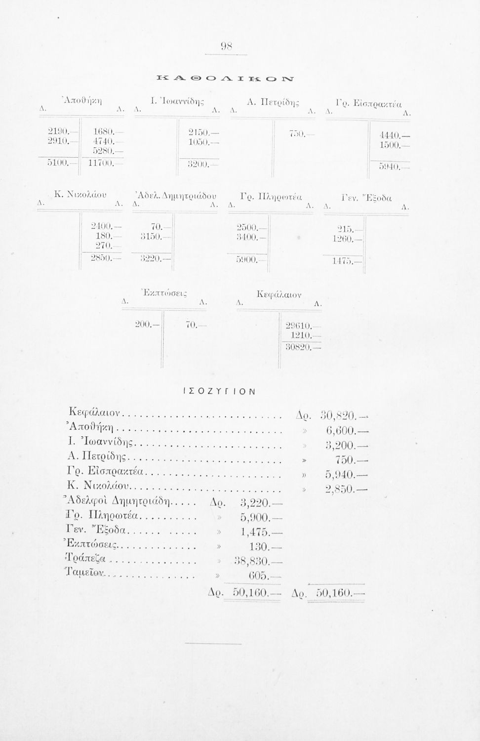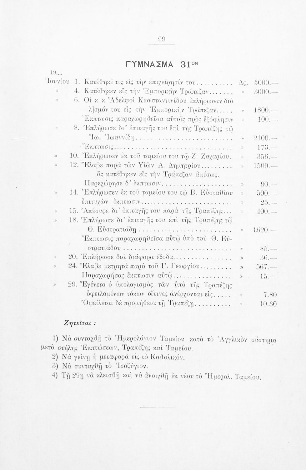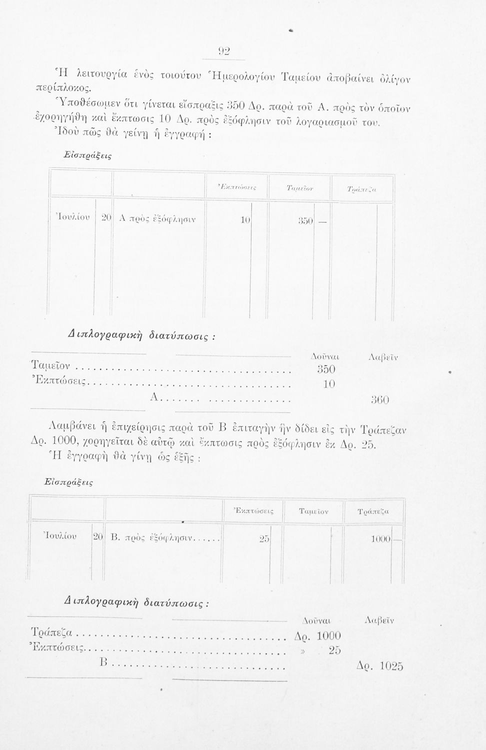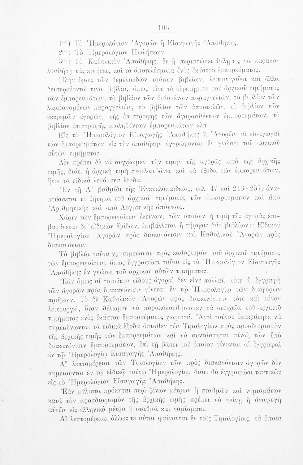 Εγχειρίδιο που στόχο είχε τη θεωρητική και πρακτική εξοικείωση και εξάσκηση εμπόρων, βιομηχάνων, τραπεζιτών, καθώς και σπουδαστών εμπορικών σχολών στη λογιστική επιστήμη. Το βιβλίο περιλαμβάνει τρόπους υπολογισμού των λογιστικών των εταιριών καθώς και σειρά ασκήσεων για πρακτική εξάσκηση.