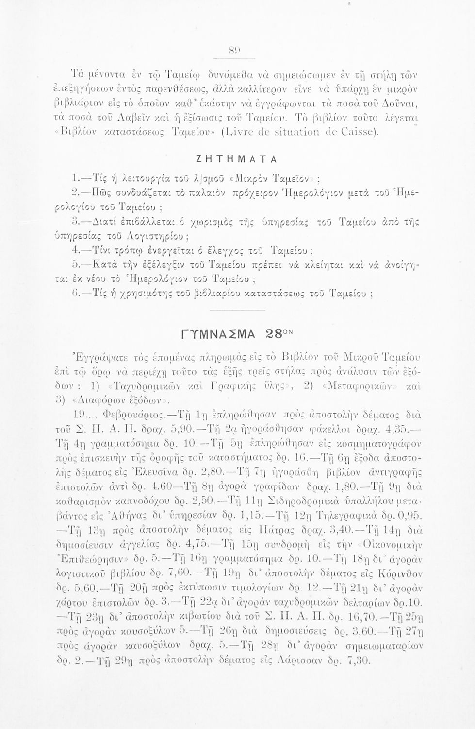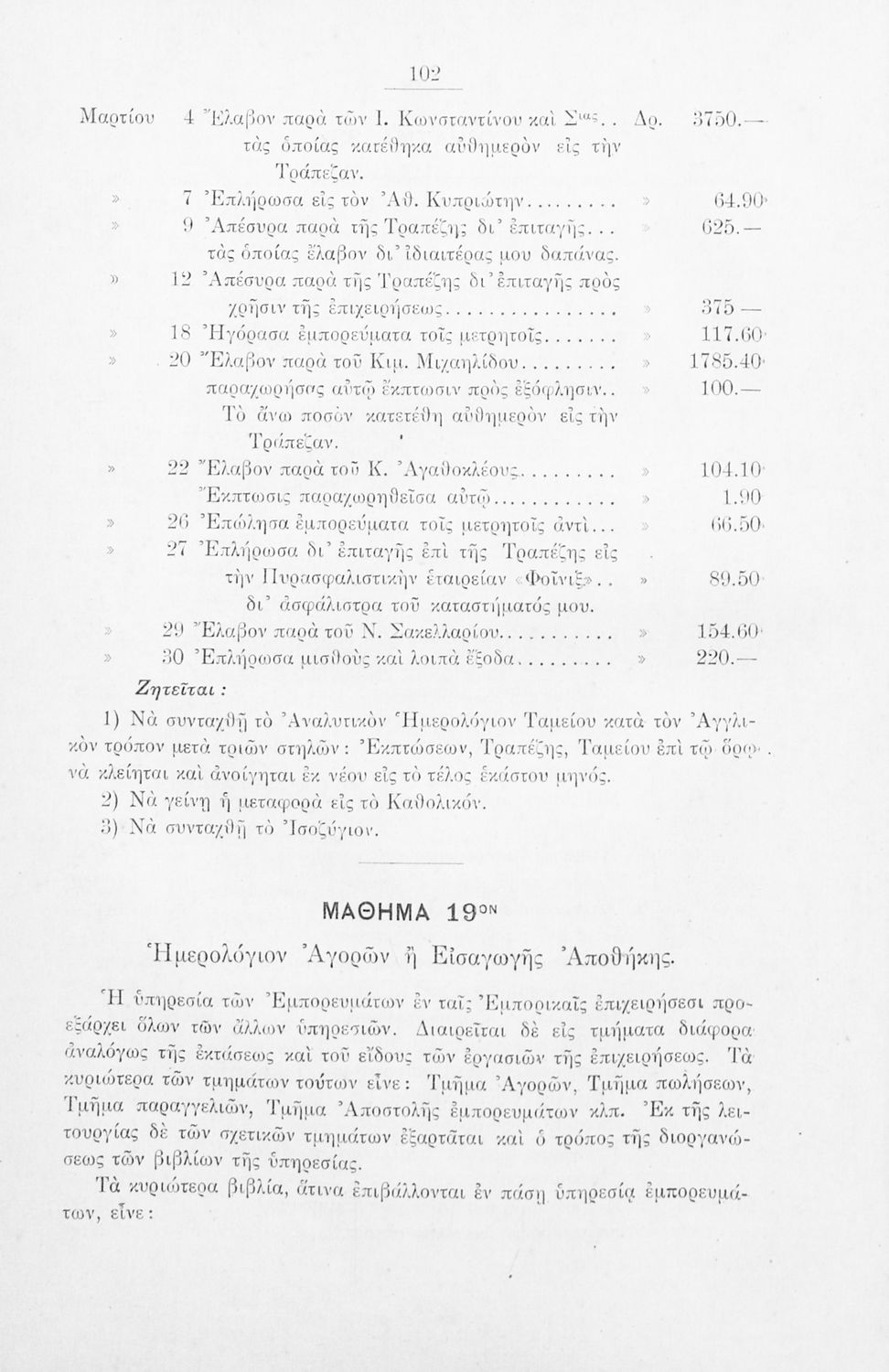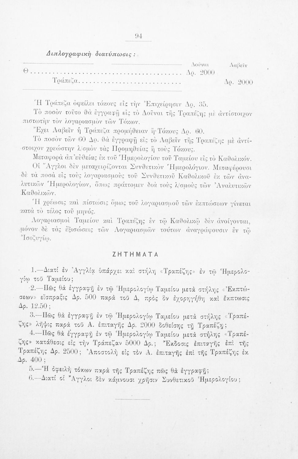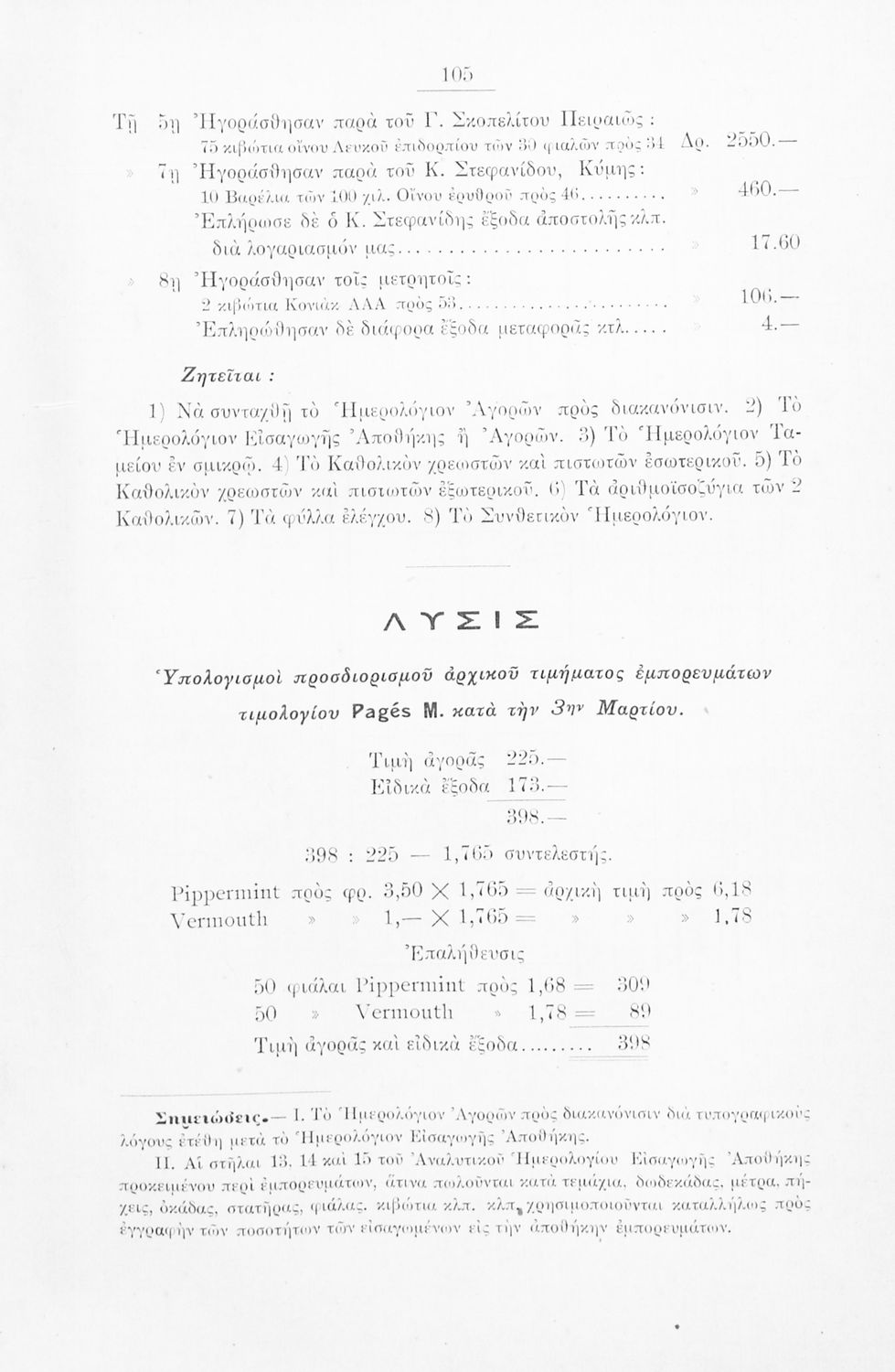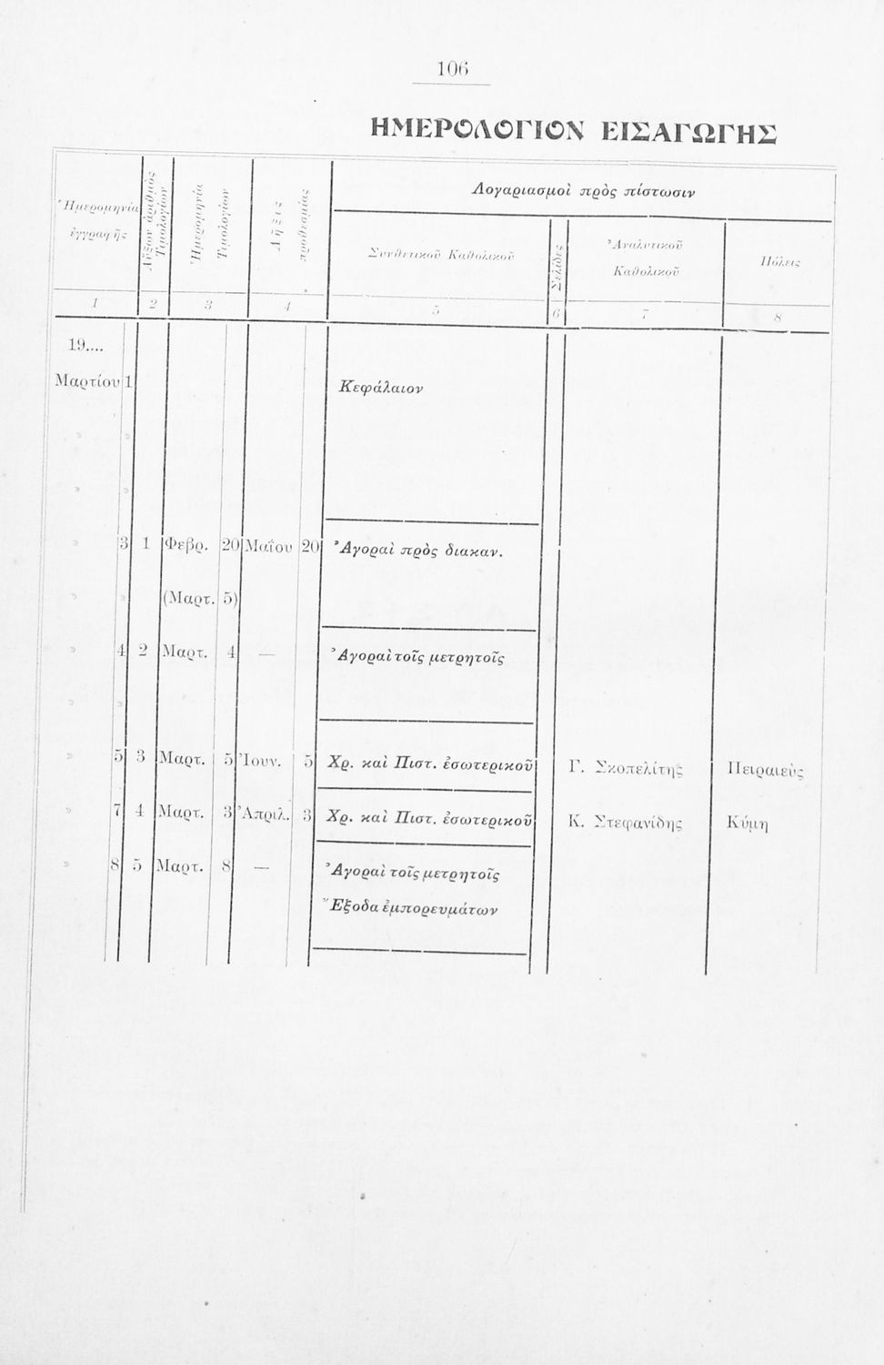 Εγχειρίδιο που στόχο είχε τη θεωρητική και πρακτική εξοικείωση και εξάσκηση εμπόρων, βιομηχάνων, τραπεζιτών, καθώς και σπουδαστών εμπορικών σχολών στη λογιστική επιστήμη. Το βιβλίο περιλαμβάνει τρόπους υπολογισμού των λογιστικών των εταιριών καθώς και σειρά ασκήσεων για πρακτική εξάσκηση.