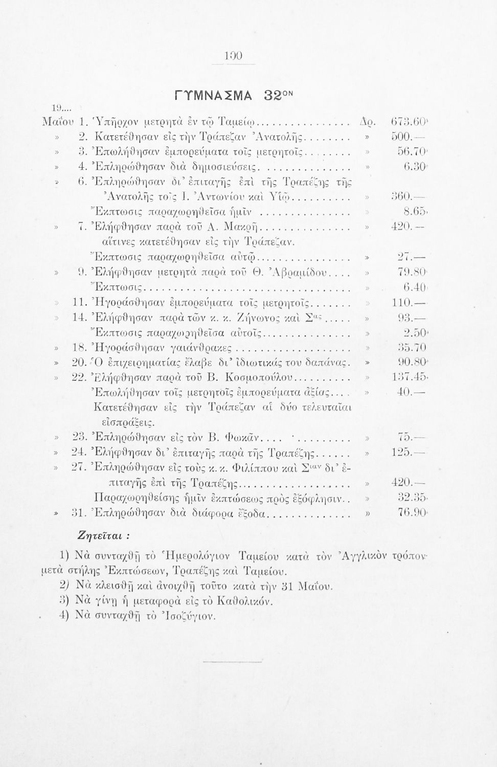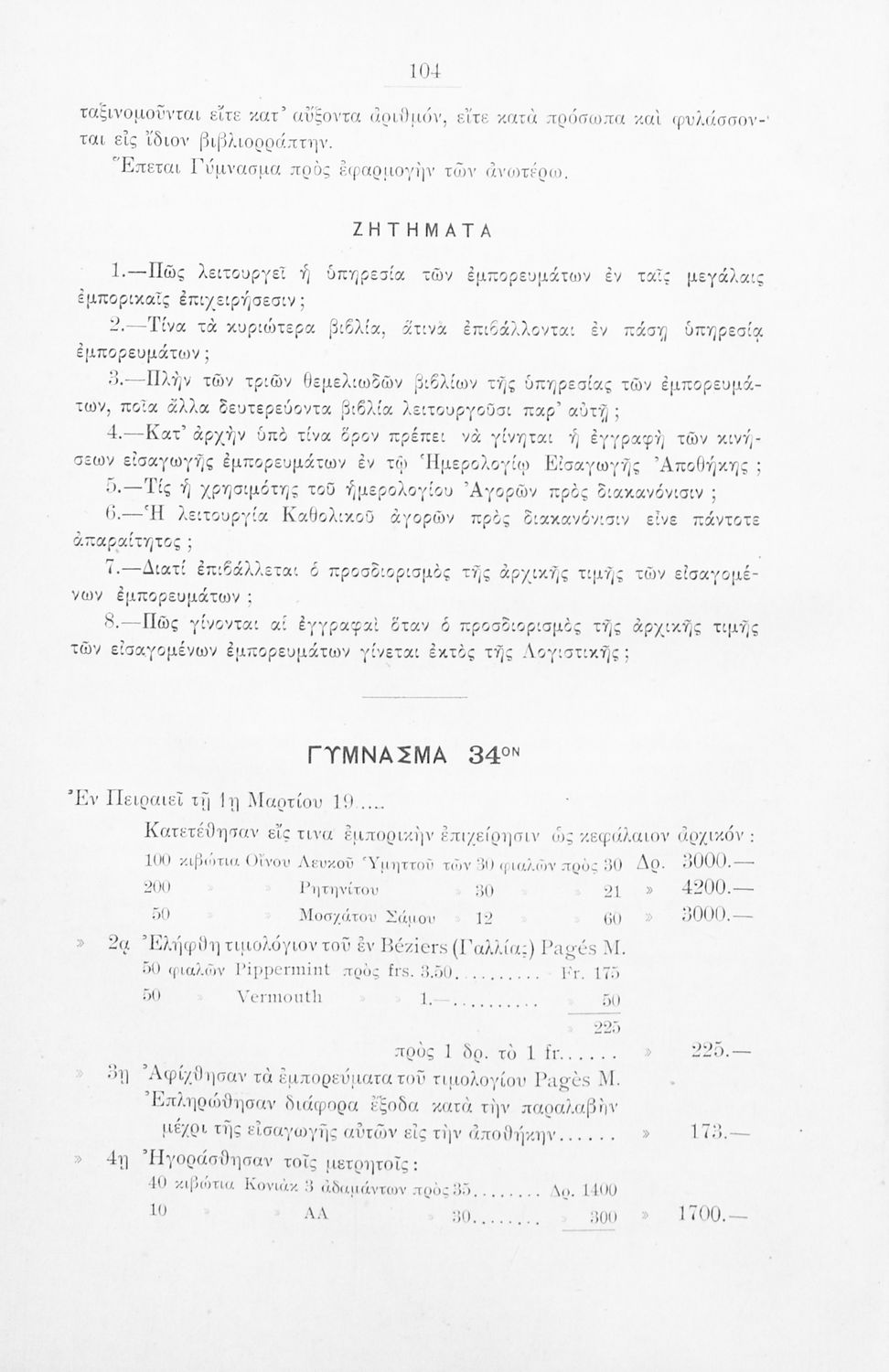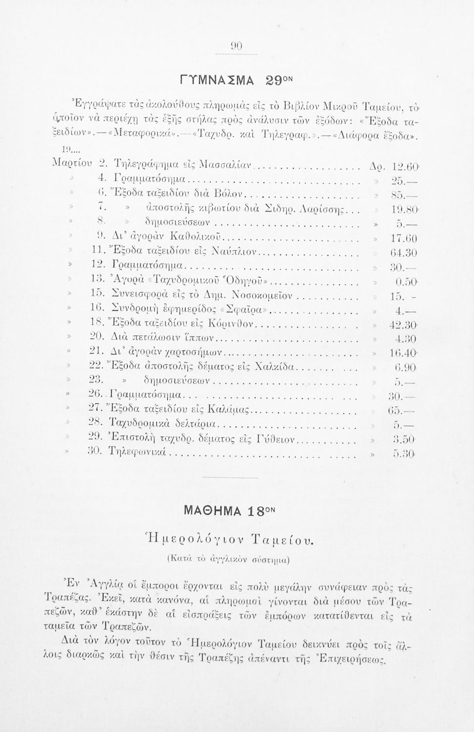 Βαθμίδα εκπαίδευσης: Δευτεροβάθμια Τάξη: Εμπορικές Σχολές Μάθημα: Λογιστική Γλώσσα: Καθαρεύουσα Παρουσίαση περιεχομένου: Εγχειρίδιο που στόχο είχε τη θεωρητική και πρακτική εξοικείωση και εξάσκηση εμπόρων, βιομηχάνων, τραπεζιτών, καθώς και σπουδαστών εμπορικών σχολών στη λογιστική επιστήμη. Το βιβλίο περιλαμβάνει τρόπους υπολογισμού των λογιστικών των εταιριών καθώς και σειρά ασκήσεων για πρακτική εξάσκηση. |