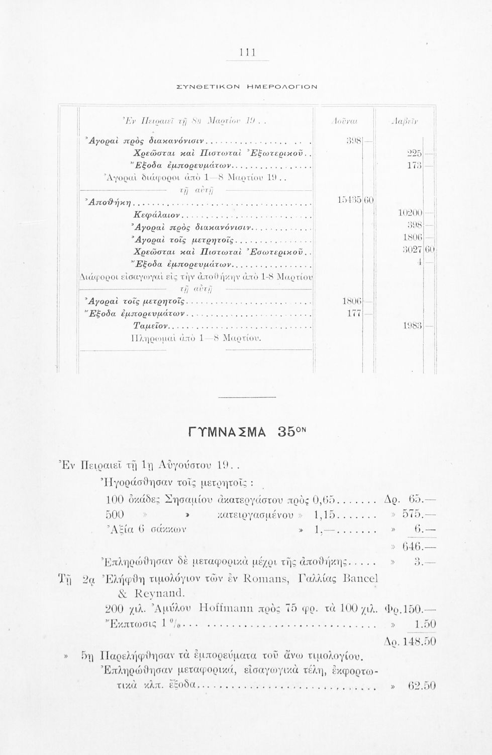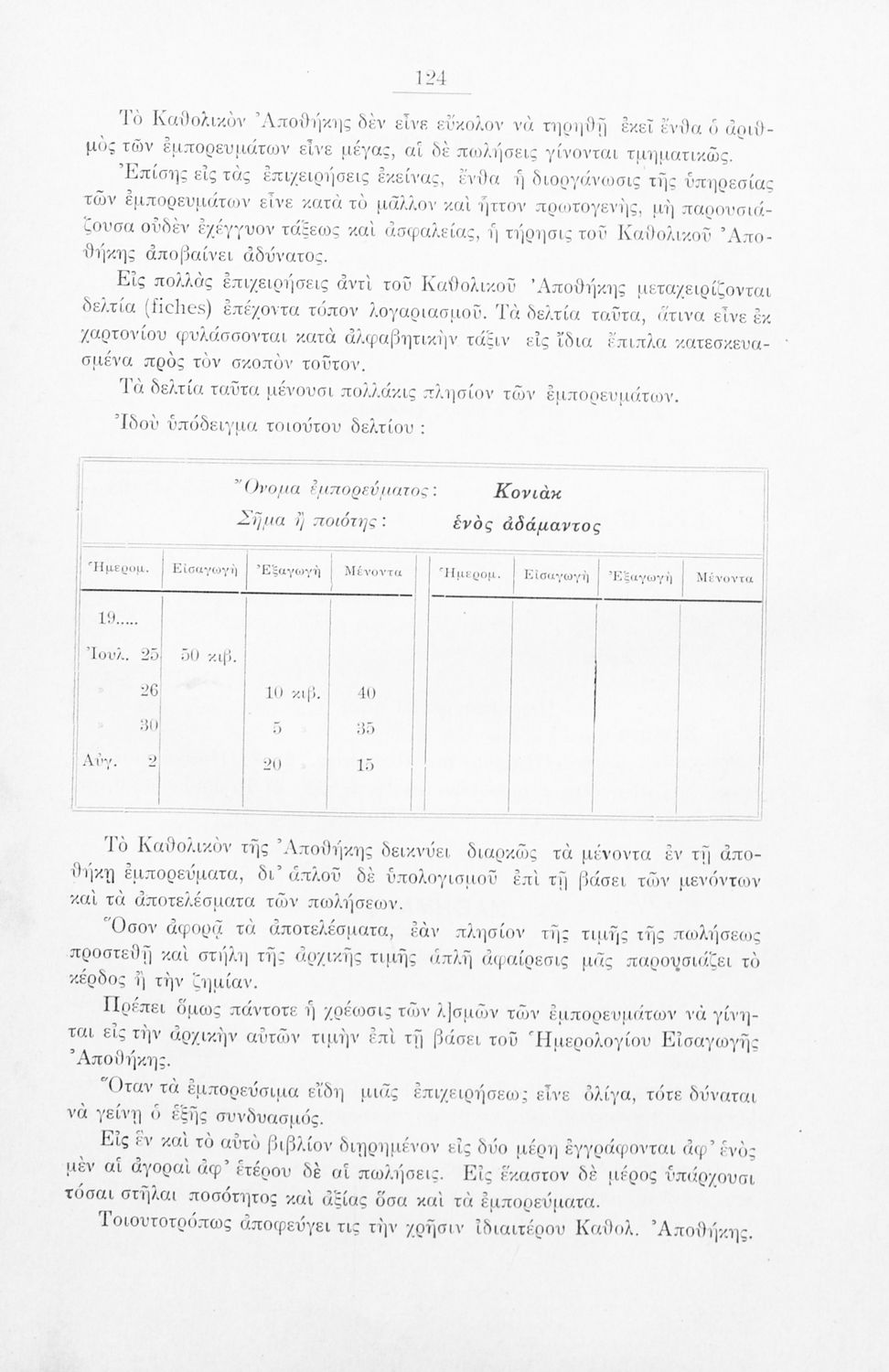 Παρουσίαση περιεχομένου: Εγχειρίδιο που στόχο είχε τη θεωρητική και πρακτική εξοικείωση και εξάσκηση εμπόρων, βιομηχάνων, τραπεζιτών, καθώς και σπουδαστών εμπορικών σχολών στη λογιστική επιστήμη. Το βιβλίο περιλαμβάνει τρόπους υπολογισμού των λογιστικών των εταιριών καθώς και σειρά ασκήσεων για πρακτική εξάσκηση.
