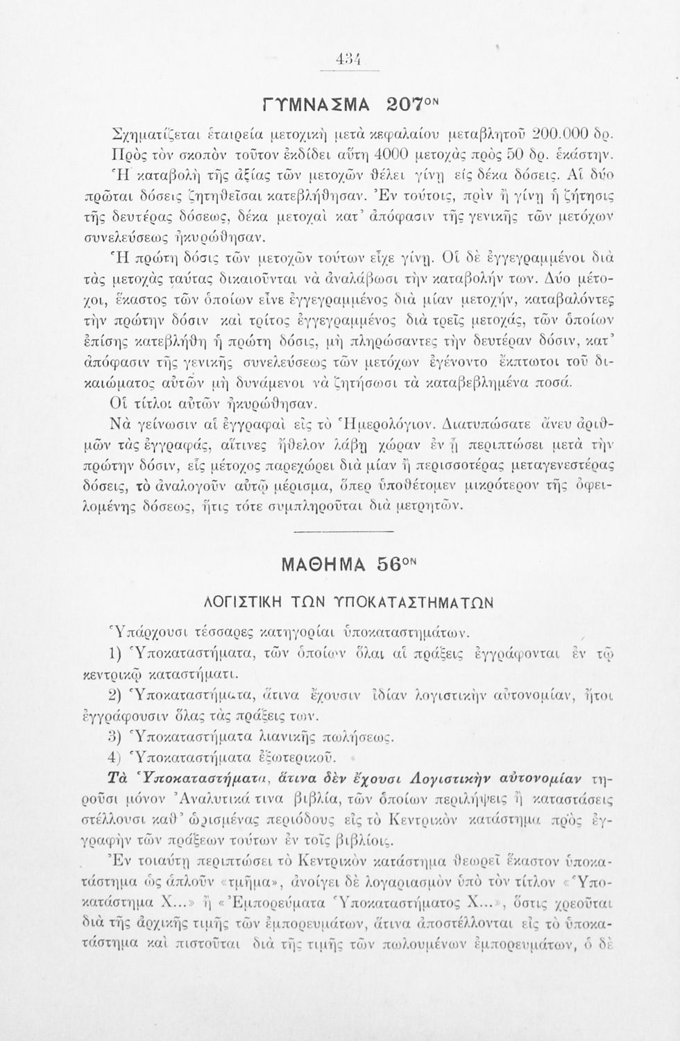 Βαθμίδα εκπαίδευσης: Δευτεροβάθμια Τάξη: Εμπορικές Σχολές Μάθημα: Λογιστική Γλώσσα: Καθαρεύουσα Παρουσίαση περιεχομένου: Εγχειρίδιο που στόχο είχε τη θεωρητική και πρακτική εξοικείωση και εξάσκηση εμπόρων, βιομηχάνων, τραπεζιτών, καθώς και σπουδαστών εμπορικών σχολών στη λογιστική επιστήμη. Το βιβλίο περιλαμβάνει τρόπους υπολογισμού των λογιστικών των εταιριών καθώς και σειρά ασκήσεων για πρακτική εξάσκηση. |