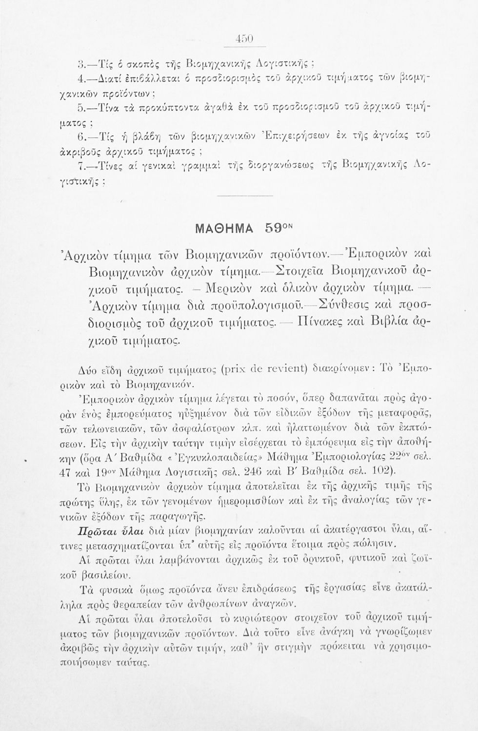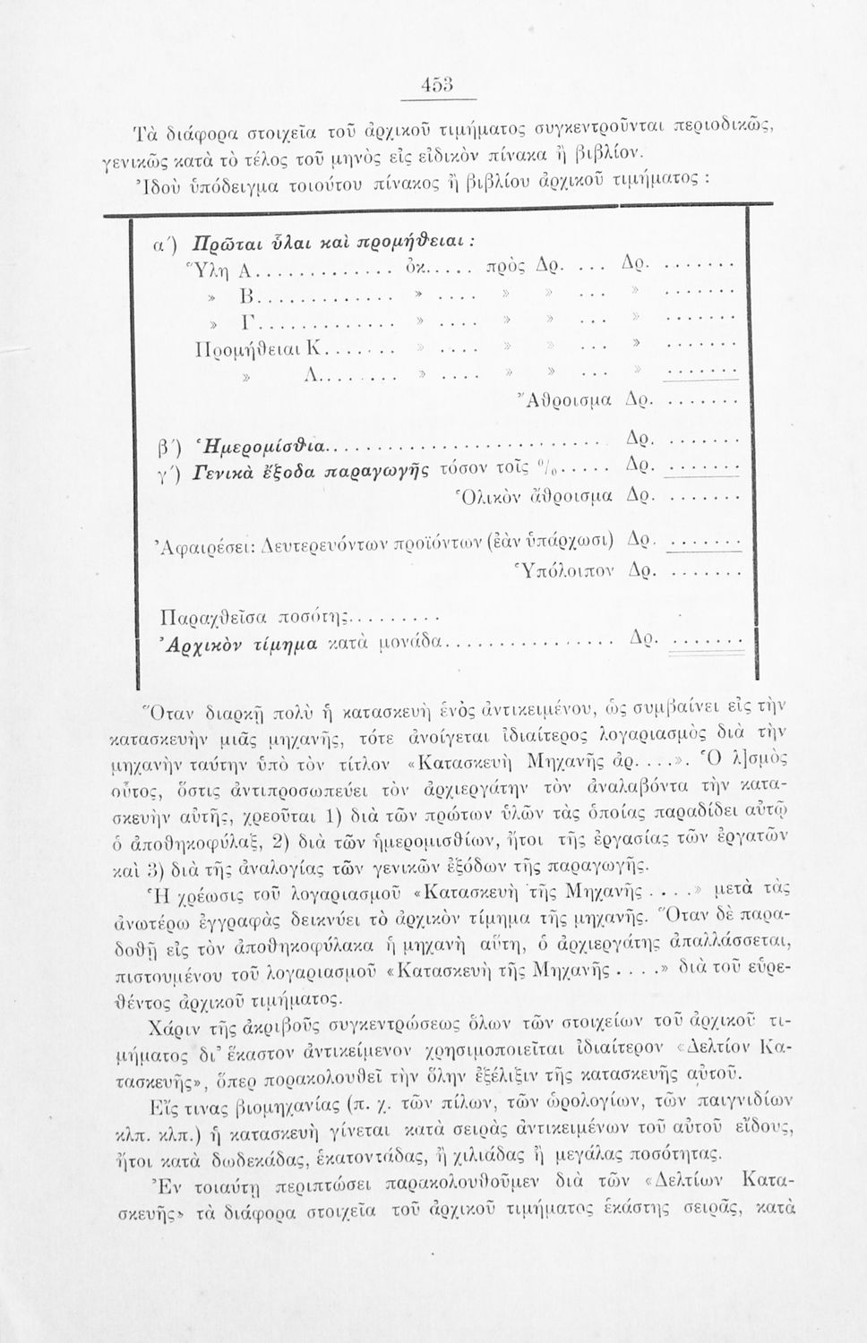 Εγχειρίδιο που στόχο είχε τη θεωρητική και πρακτική εξοικείωση και εξάσκηση εμπόρων, βιομηχάνων, τραπεζιτών, καθώς και σπουδαστών εμπορικών σχολών στη λογιστική επιστήμη. Το βιβλίο περιλαμβάνει τρόπους υπολογισμού των λογιστικών των εταιριών καθώς και σειρά ασκήσεων για πρακτική εξάσκηση.