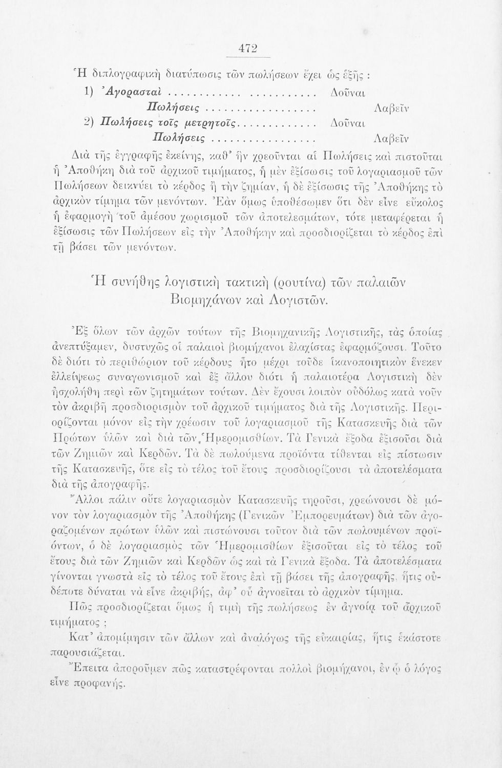 Παρουσίαση περιεχομένου: Εγχειρίδιο που στόχο είχε τη θεωρητική και πρακτική εξοικείωση και εξάσκηση εμπόρων, βιομηχάνων, τραπεζιτών, καθώς και σπουδαστών εμπορικών σχολών στη λογιστική επιστήμη. Το βιβλίο περιλαμβάνει τρόπους υπολογισμού των λογιστικών των εταιριών καθώς και σειρά ασκήσεων για πρακτική εξάσκηση.