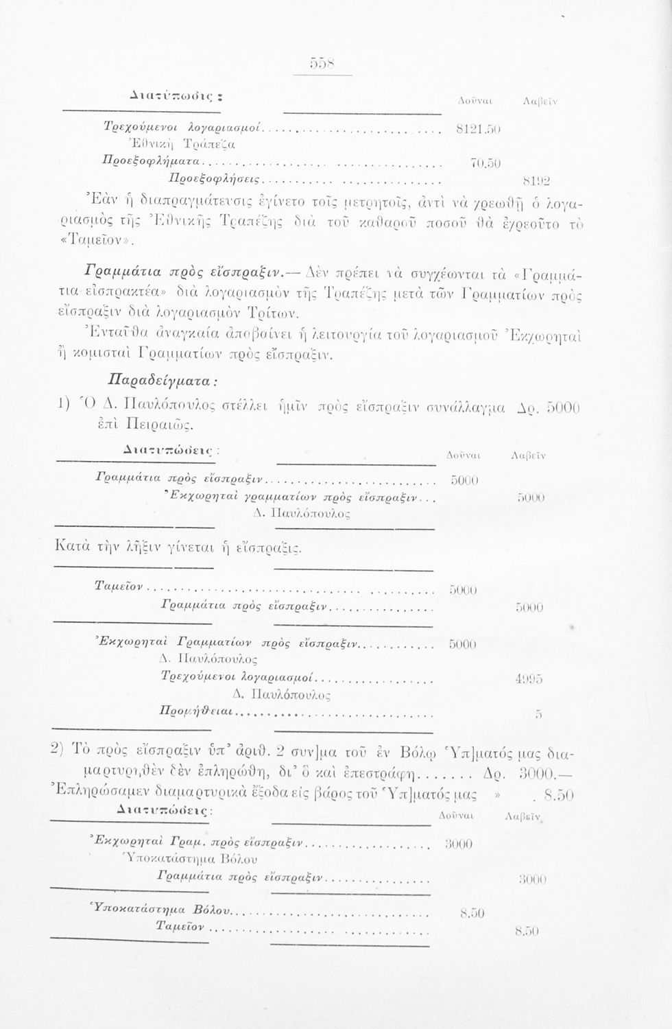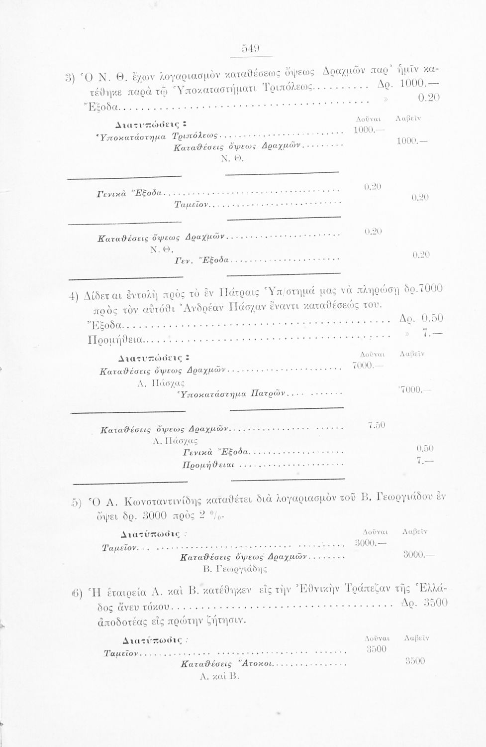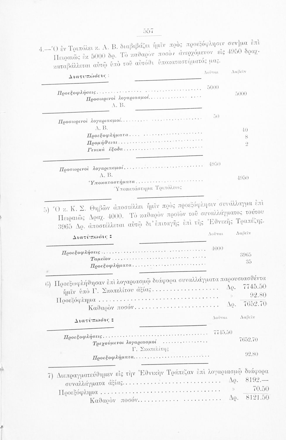Εγχειρίδιο που στόχο είχε τη θεωρητική και πρακτική εξοικείωση και εξάσκηση εμπόρων, βιομηχάνων, τραπεζιτών, καθώς και σπουδαστών εμπορικών σχολών στη λογιστική επιστήμη. Το βιβλίο περιλαμβάνει τρόπους υπολογισμού των λογιστικών των εταιριών καθώς και σειρά ασκήσεων για πρακτική εξάσκηση.