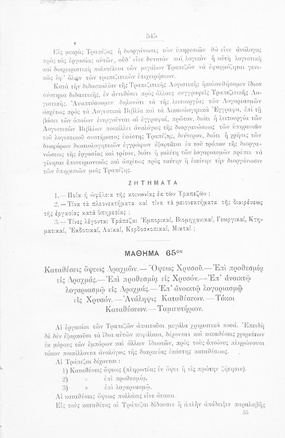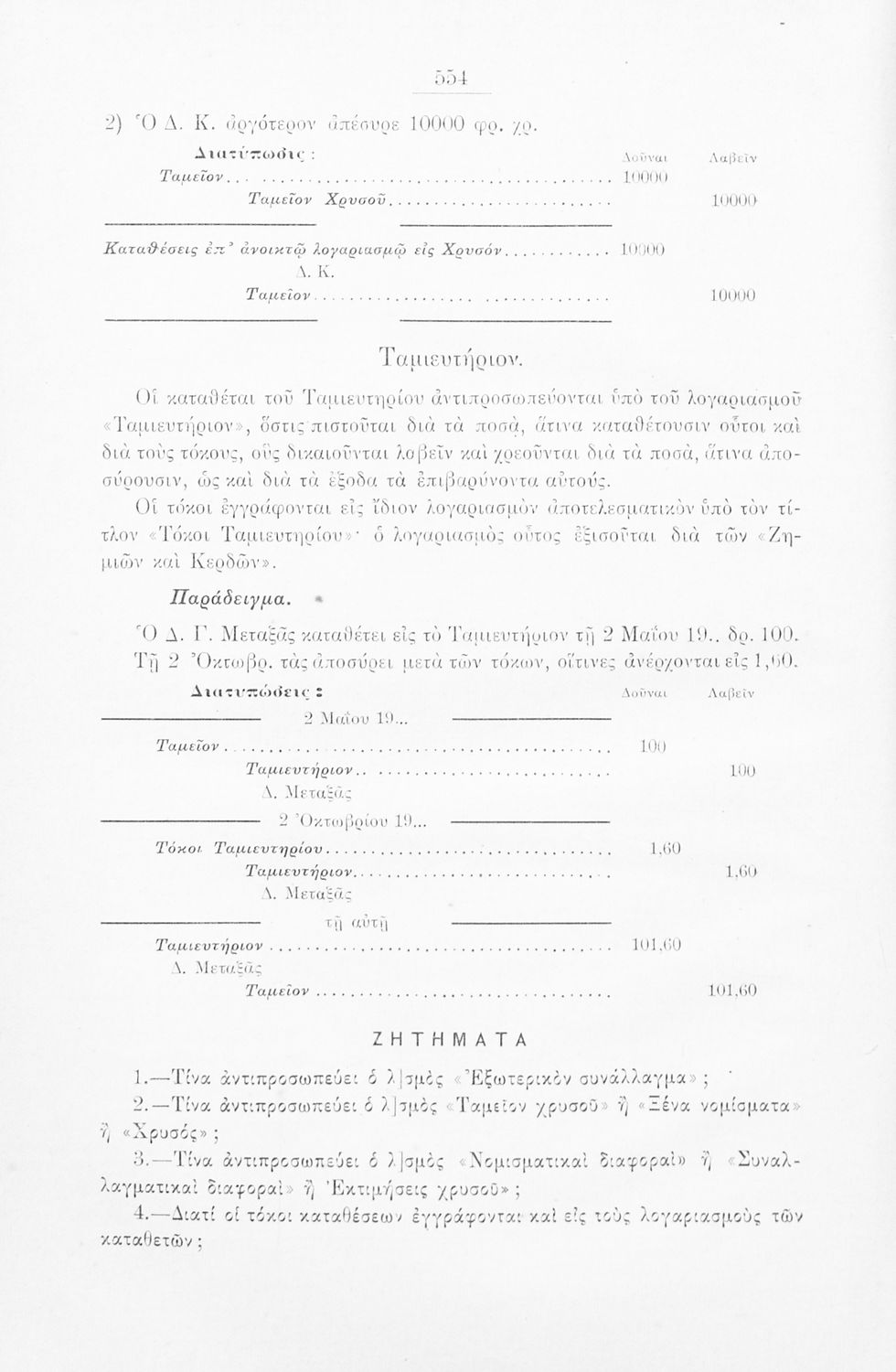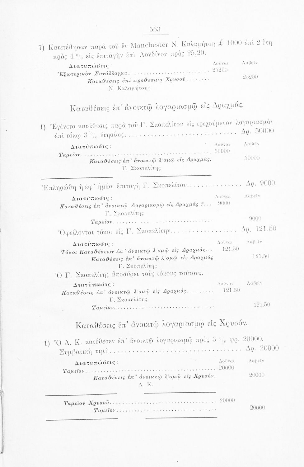 Εγχειρίδιο που στόχο είχε τη θεωρητική και πρακτική εξοικείωση και εξάσκηση εμπόρων, βιομηχάνων, τραπεζιτών, καθώς και σπουδαστών εμπορικών σχολών στη λογιστική επιστήμη. Το βιβλίο περιλαμβάνει τρόπους υπολογισμού των λογιστικών των εταιριών καθώς και σειρά ασκήσεων για πρακτική εξάσκηση.