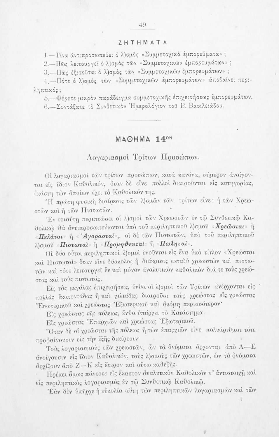Ανωτέρα Λογιστική, Θεωρητική και Πρακτική, Εφηρμοσμένη επί εμπορικών, βιομηχανικών και τραπεζιτικών επιχειρήσεων, εταιρειών κλπ