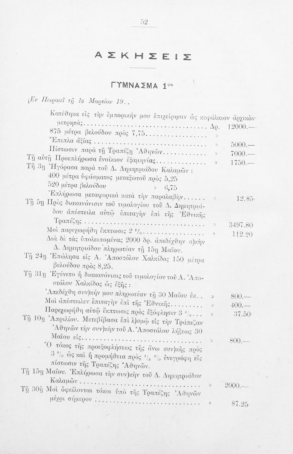 Εγχειρίδιο που στόχο είχε τη θεωρητική και πρακτική εξοικείωση και εξάσκηση εμπόρων, βιομηχάνων, τραπεζιτών, καθώς και σπουδαστών εμπορικών σχολών στη λογιστική επιστήμη. Το βιβλίο περιλαμβάνει τρόπους υπολογισμού των λογιστικών των εταιριών καθώς και σειρά ασκήσεων για πρακτική εξάσκηση.