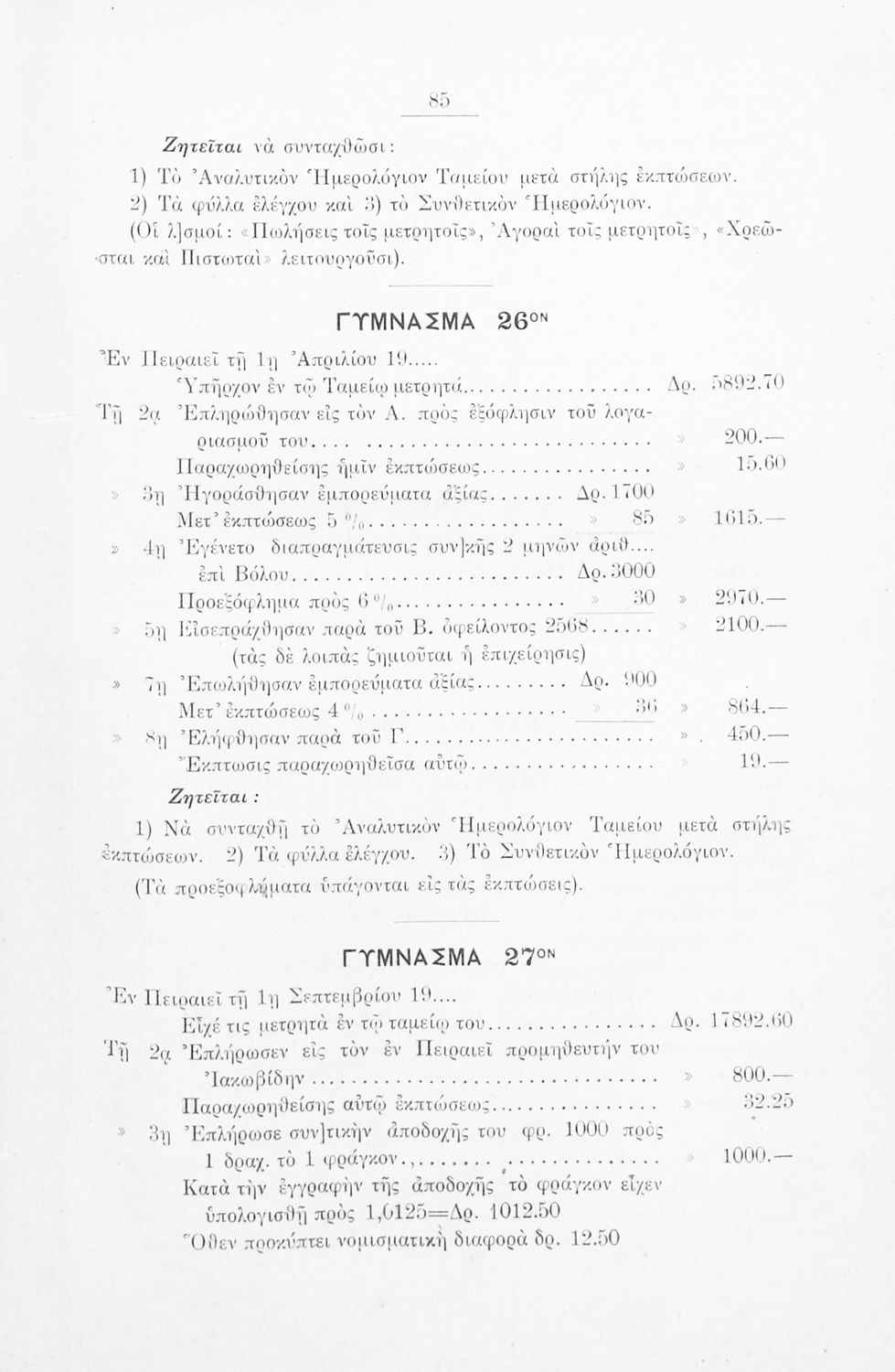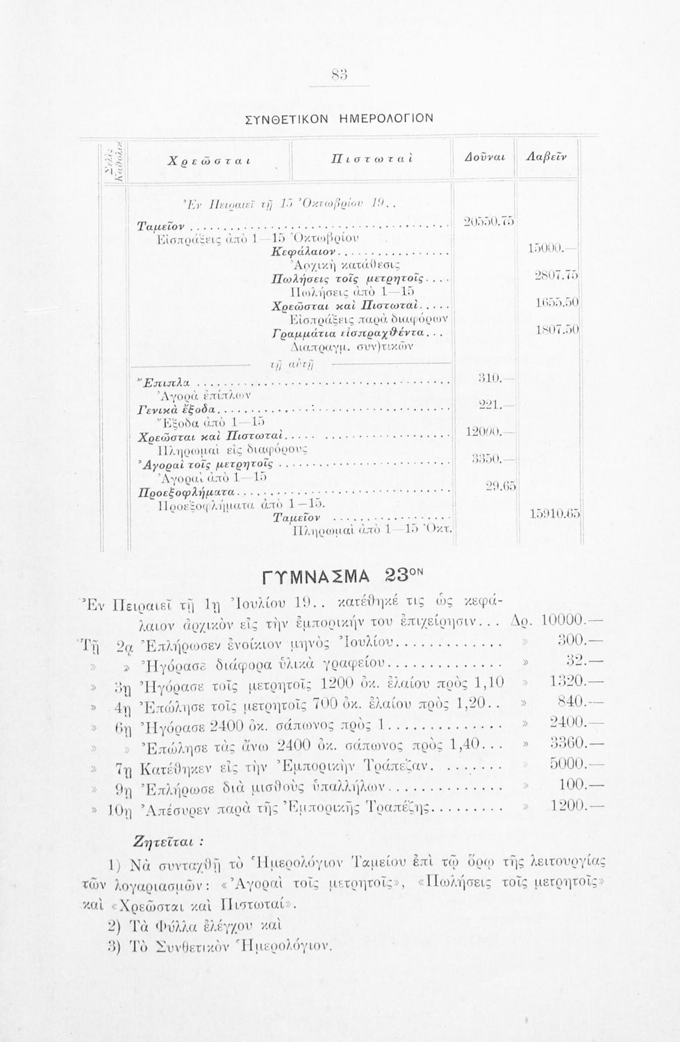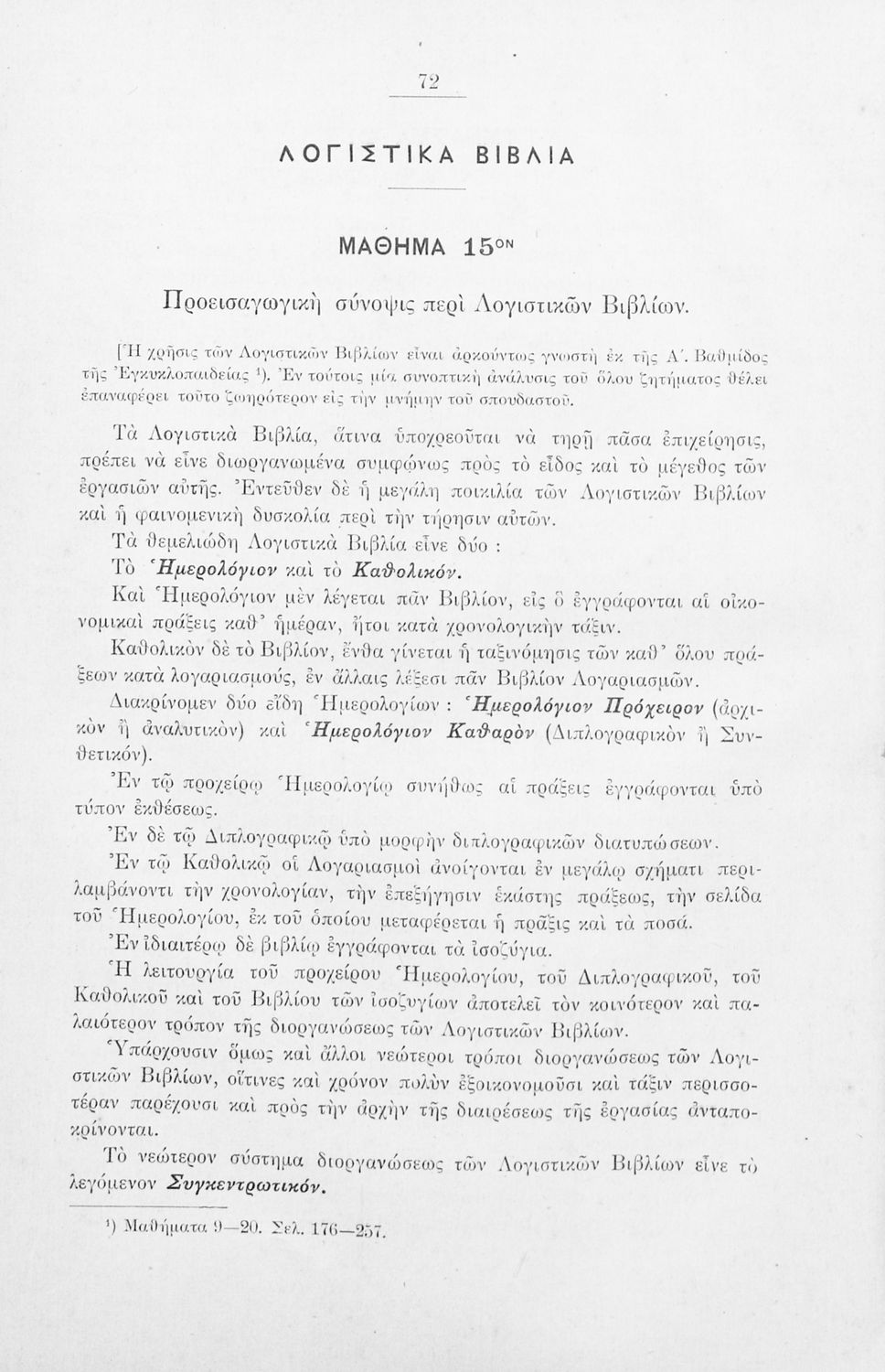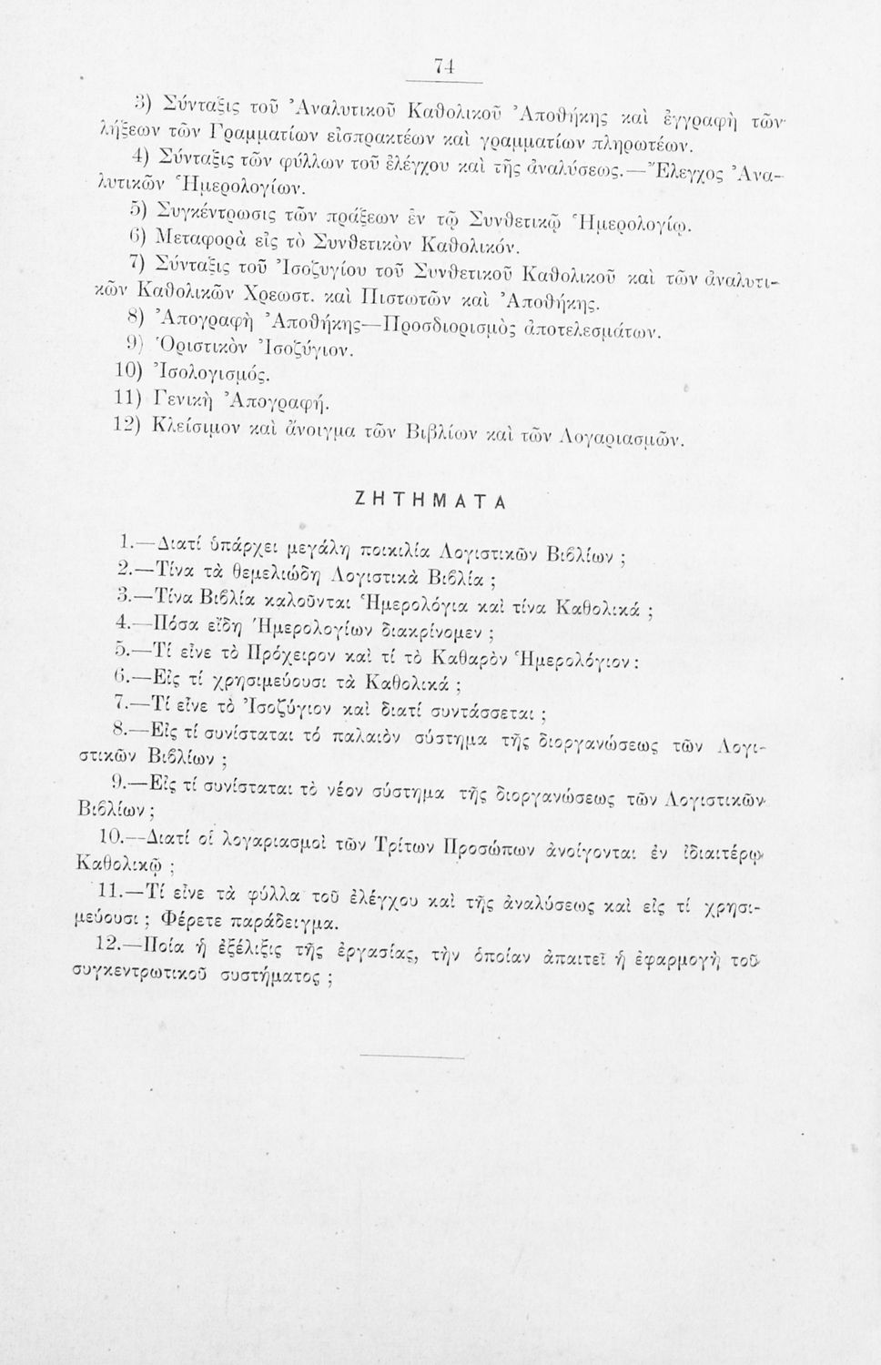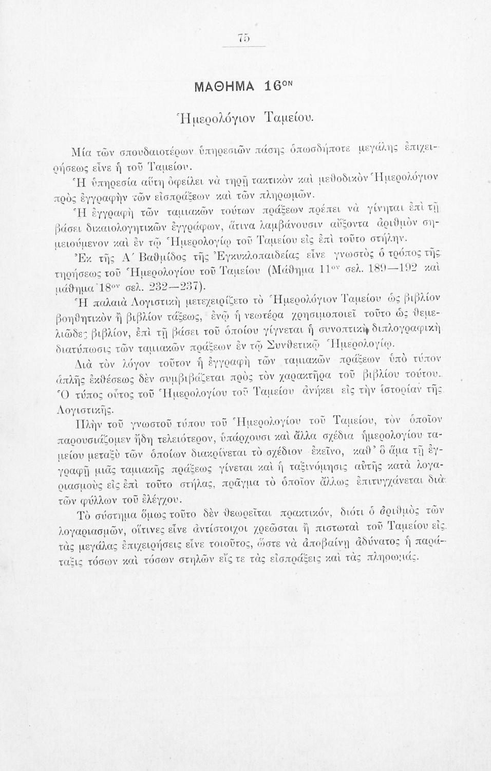 Βαθμίδα εκπαίδευσης: Δευτεροβάθμια Τάξη: Εμπορικές Σχολές Μάθημα: Λογιστική Γλώσσα: Καθαρεύουσα Παρουσίαση περιεχομένου: Εγχειρίδιο που στόχο είχε τη θεωρητική και πρακτική εξοικείωση και εξάσκηση εμπόρων, βιομηχάνων, τραπεζιτών, καθώς και σπουδαστών εμπορικών σχολών στη λογιστική επιστήμη. Το βιβλίο περιλαμβάνει τρόπους υπολογισμού των λογιστικών των εταιριών καθώς και σειρά ασκήσεων για πρακτική εξάσκηση. |