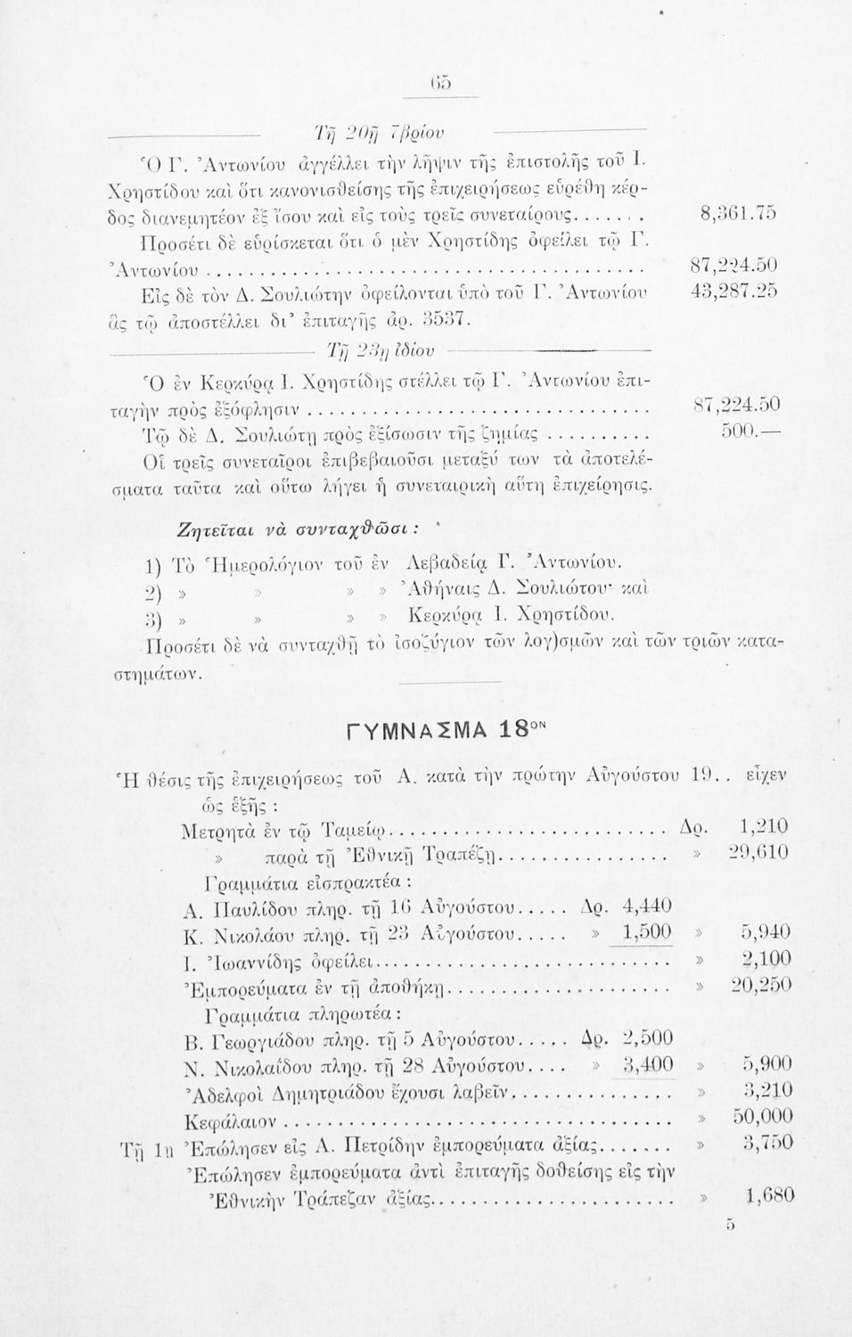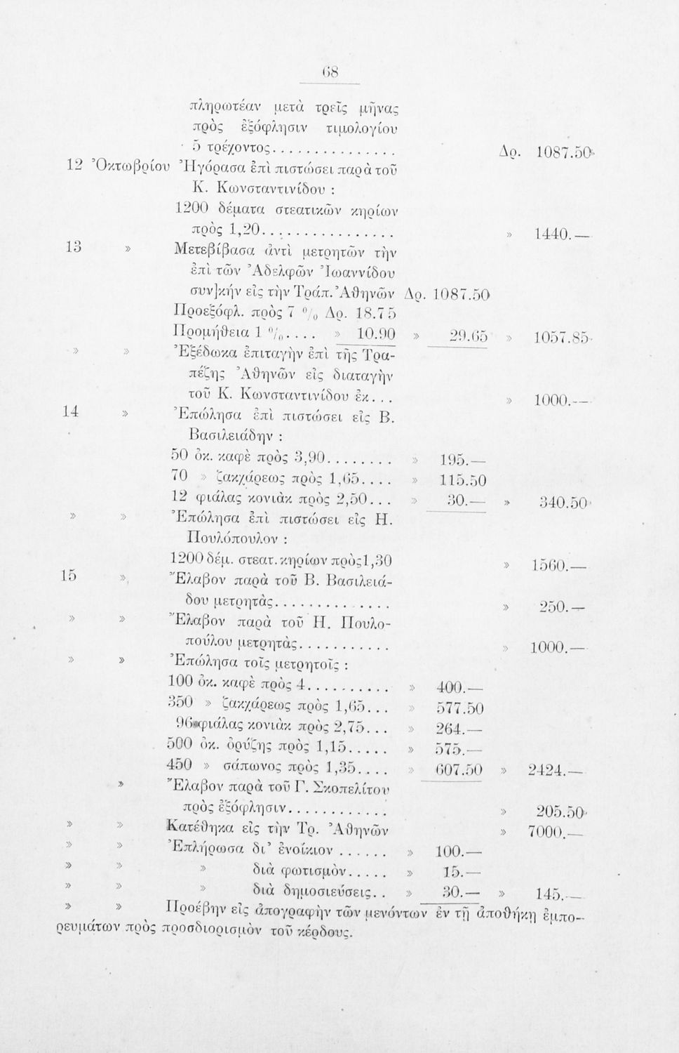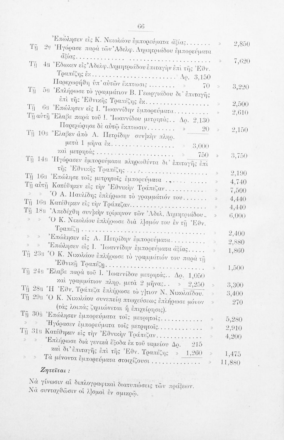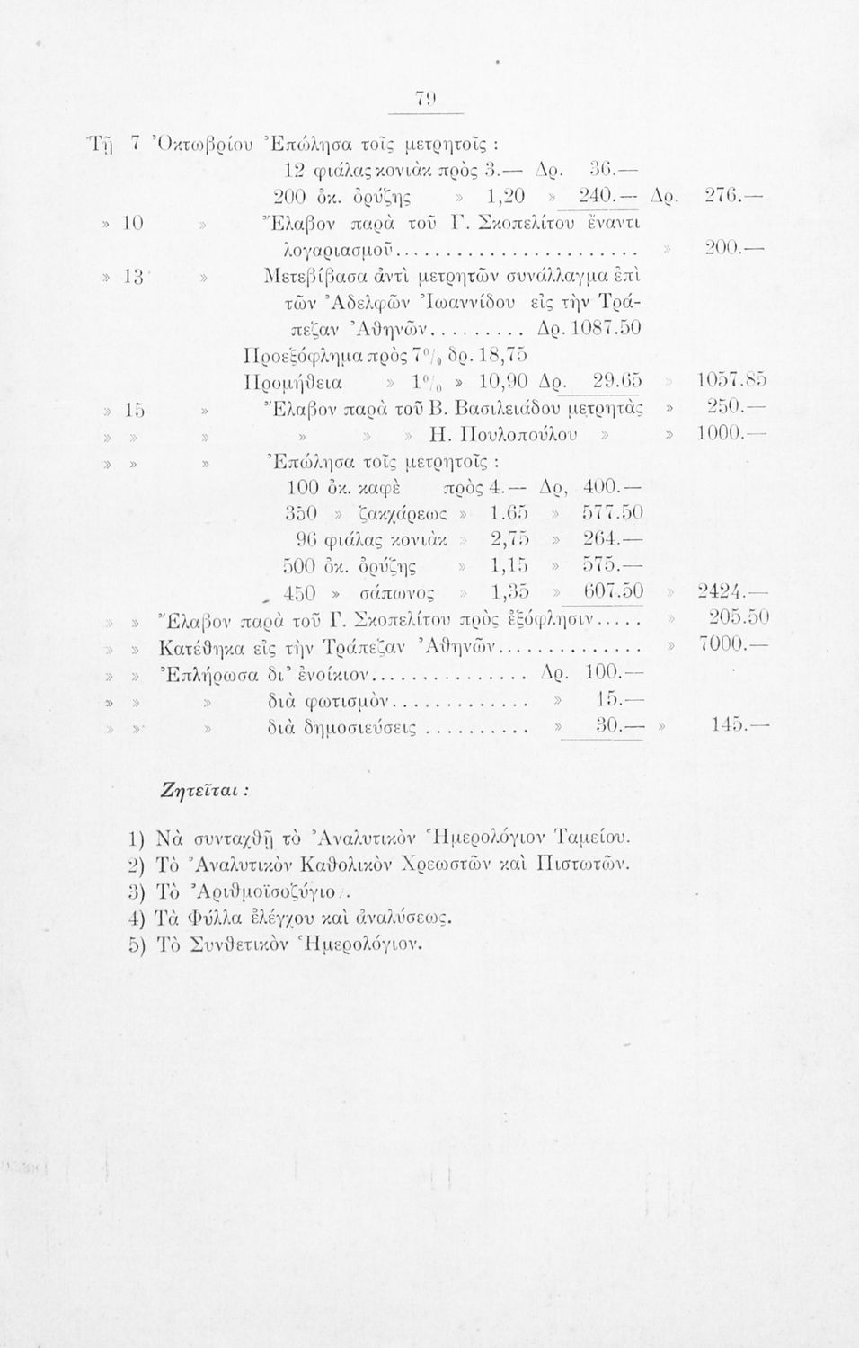 Εγχειρίδιο που στόχο είχε τη θεωρητική και πρακτική εξοικείωση και εξάσκηση εμπόρων, βιομηχάνων, τραπεζιτών, καθώς και σπουδαστών εμπορικών σχολών στη λογιστική επιστήμη. Το βιβλίο περιλαμβάνει τρόπους υπολογισμού των λογιστικών των εταιριών καθώς και σειρά ασκήσεων για πρακτική εξάσκηση.