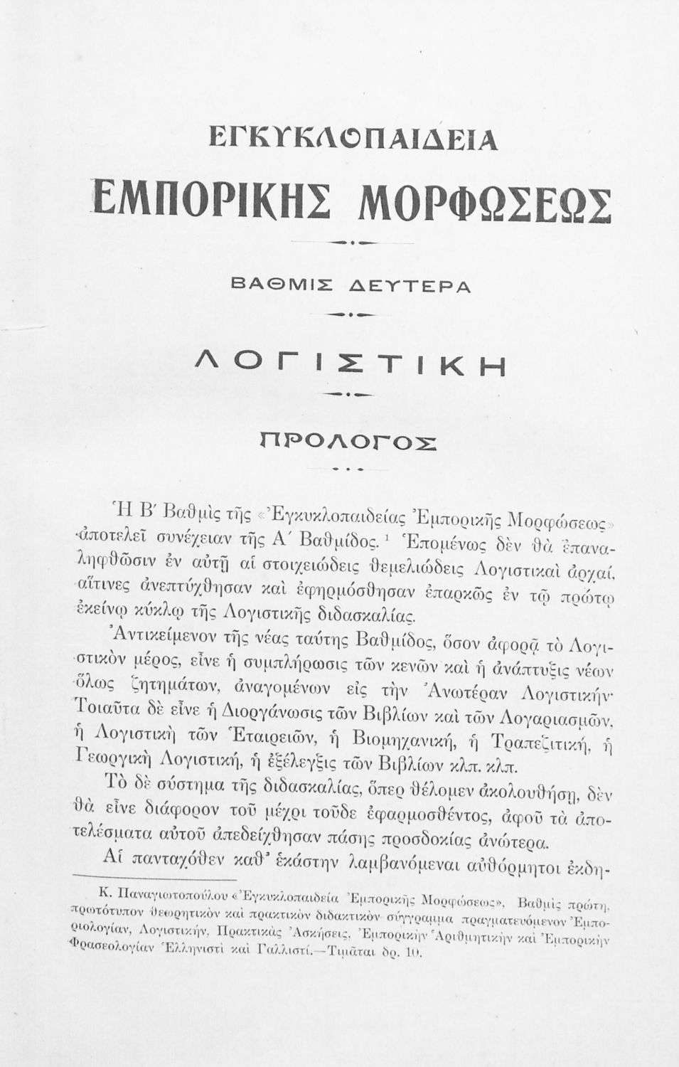 Παρουσίαση περιεχομένου: Εγχειρίδιο που στόχο είχε τη θεωρητική και πρακτική εξοικείωση και εξάσκηση εμπόρων, βιομηχάνων, τραπεζιτών, καθώς και σπουδαστών εμπορικών σχολών στη λογιστική επιστήμη. Το βιβλίο περιλαμβάνει τρόπους υπολογισμού των λογιστικών των εταιριών καθώς και σειρά ασκήσεων για πρακτική εξάσκηση.