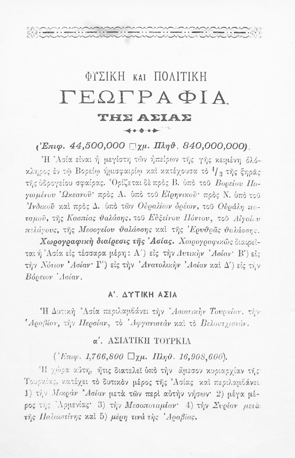 Φυσική και πολιτική γεωγραφία της Ασίας, Αφρικής, Αμερικής και Αυστραλίας : διά την Α΄ τάξιν των Ελληνικών Σχολείων