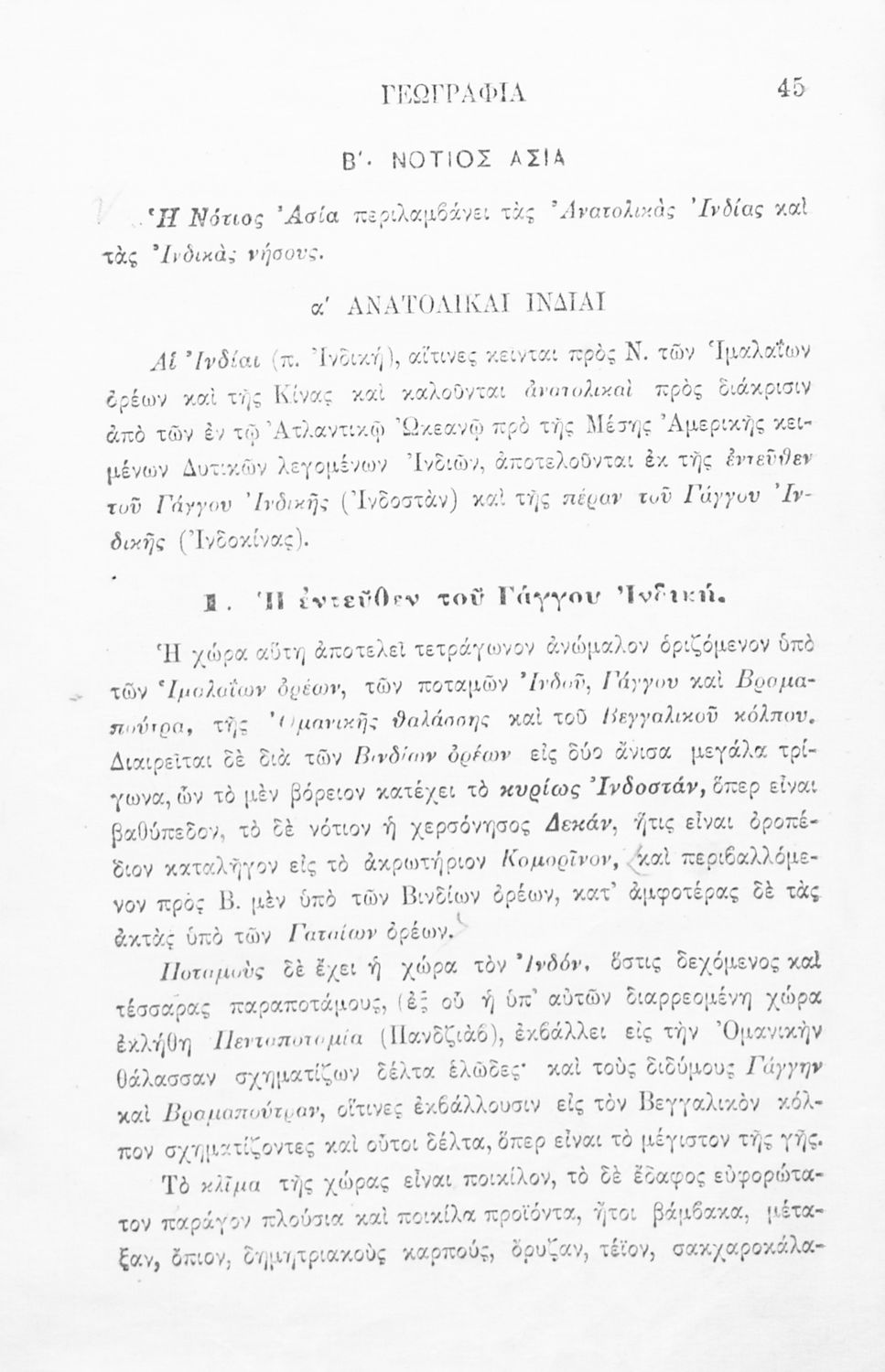 Βαθμίδα εκπαίδευσης: Δευτεροβάθμια Τάξη: Α' Ελληνικού Σχολείου Μάθημα: Γεωγραφία Γλώσσα: Καθαρεύουσα Παρουσίαση περιεχομένου: Πρόκειται για σχολικό εγχειρίδιο το οποίο προοριζόταν για τη διδασκαλία του μαθήματος της φυσικής και πολιτικής γεωγραφία της Ασίας, Αφρικής, Αμερικής και Αυστραλίας στην Α΄ τάξη των Ελληνικών Σχολείων. Φέρει λίγες προσωπικές σημειώσεις και σκίτσα του μαθητή, το ενδεικτικό βιβλιόσημο γνησιότητας, καθώς και την ένδειξη Βασίλειον της Ελλάδας. |