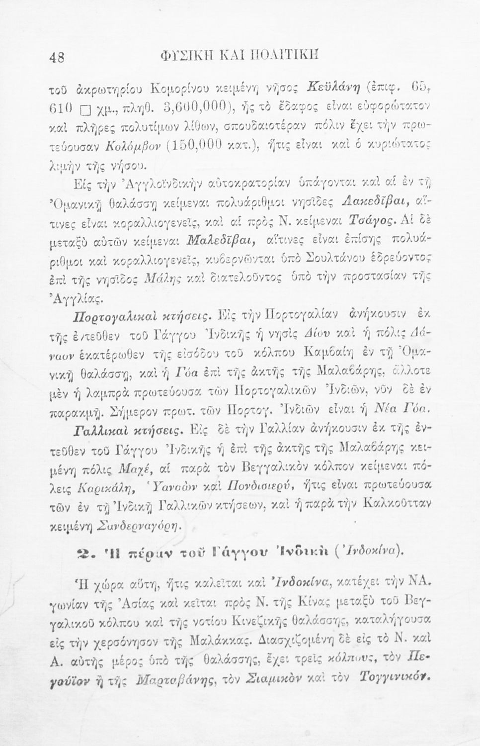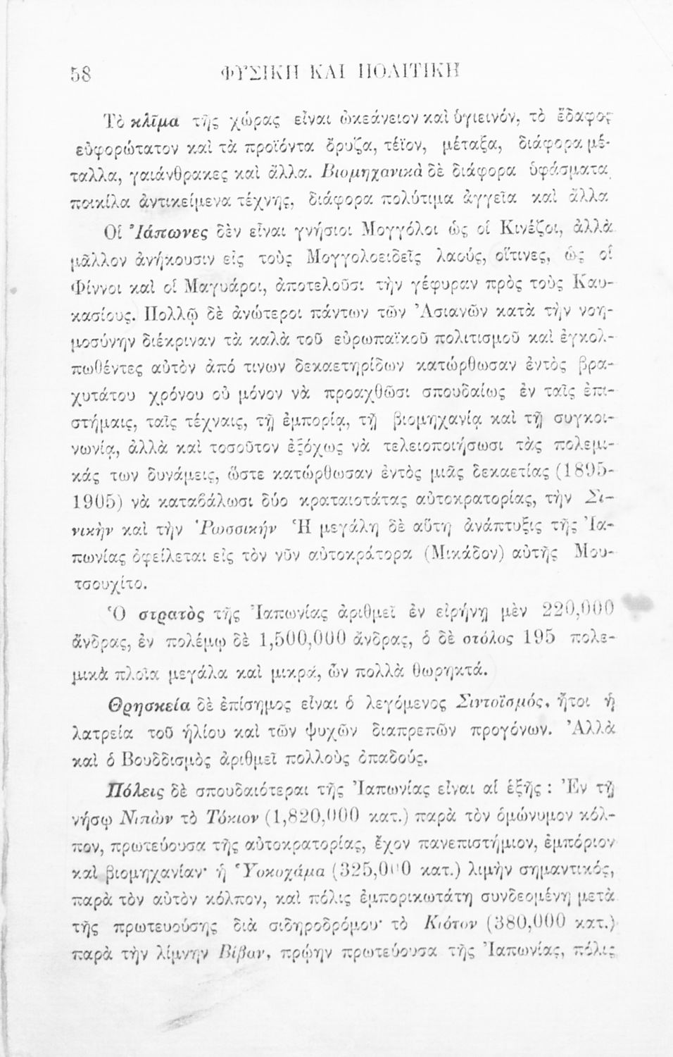 Πρόκειται για σχολικό εγχειρίδιο το οποίο προοριζόταν για τη διδασκαλία του μαθήματος της φυσικής και πολιτικής γεωγραφία της Ασίας, Αφρικής, Αμερικής και Αυστραλίας στην Α΄ τάξη των Ελληνικών Σχολείων. Φέρει λίγες προσωπικές σημειώσεις και σκίτσα του μαθητή, το ενδεικτικό βιβλιόσημο γνησιότητας, καθώς και την ένδειξη Βασίλειον της Ελλάδας.