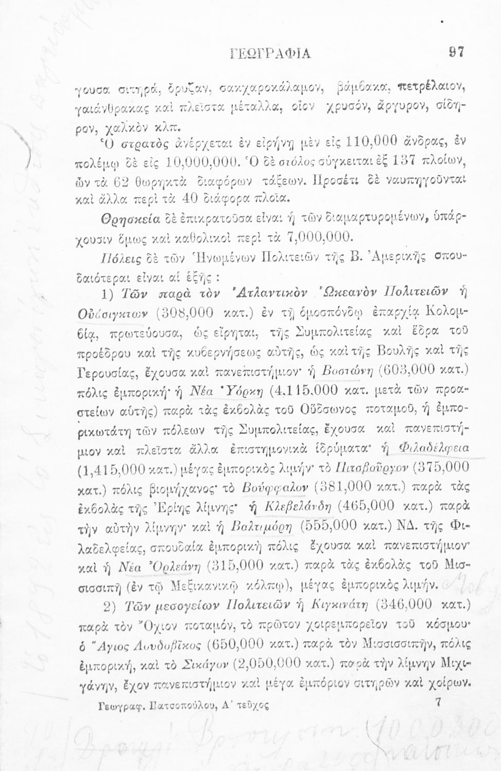 Σχολικό εγχειρίδιο Γεωγραφίας Α' Ελληνικού Σχολείου και Παρθεναγωγείου που περιλαμβάνει εισαγωγή περιέχει εισαγωγή στη μαθηματική, φυσική, φυσιογραφική και ανθρωπολογική γεωγραφία και εξετάζει τη ...