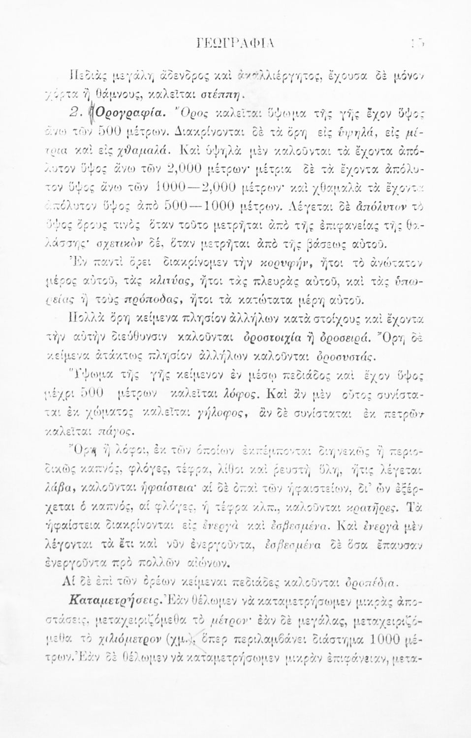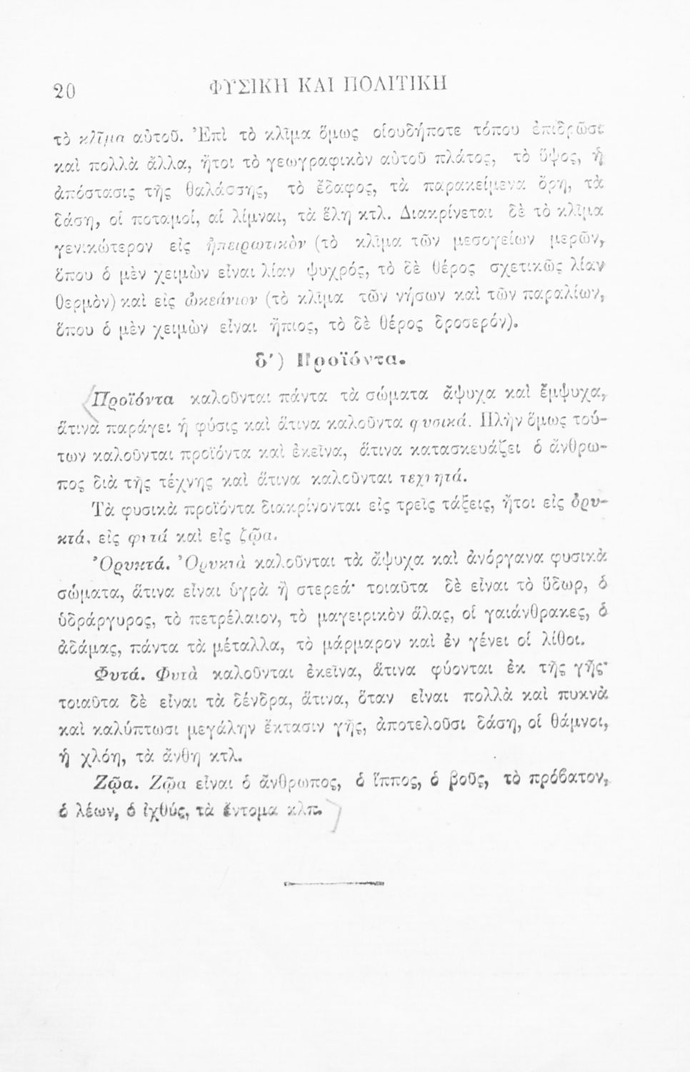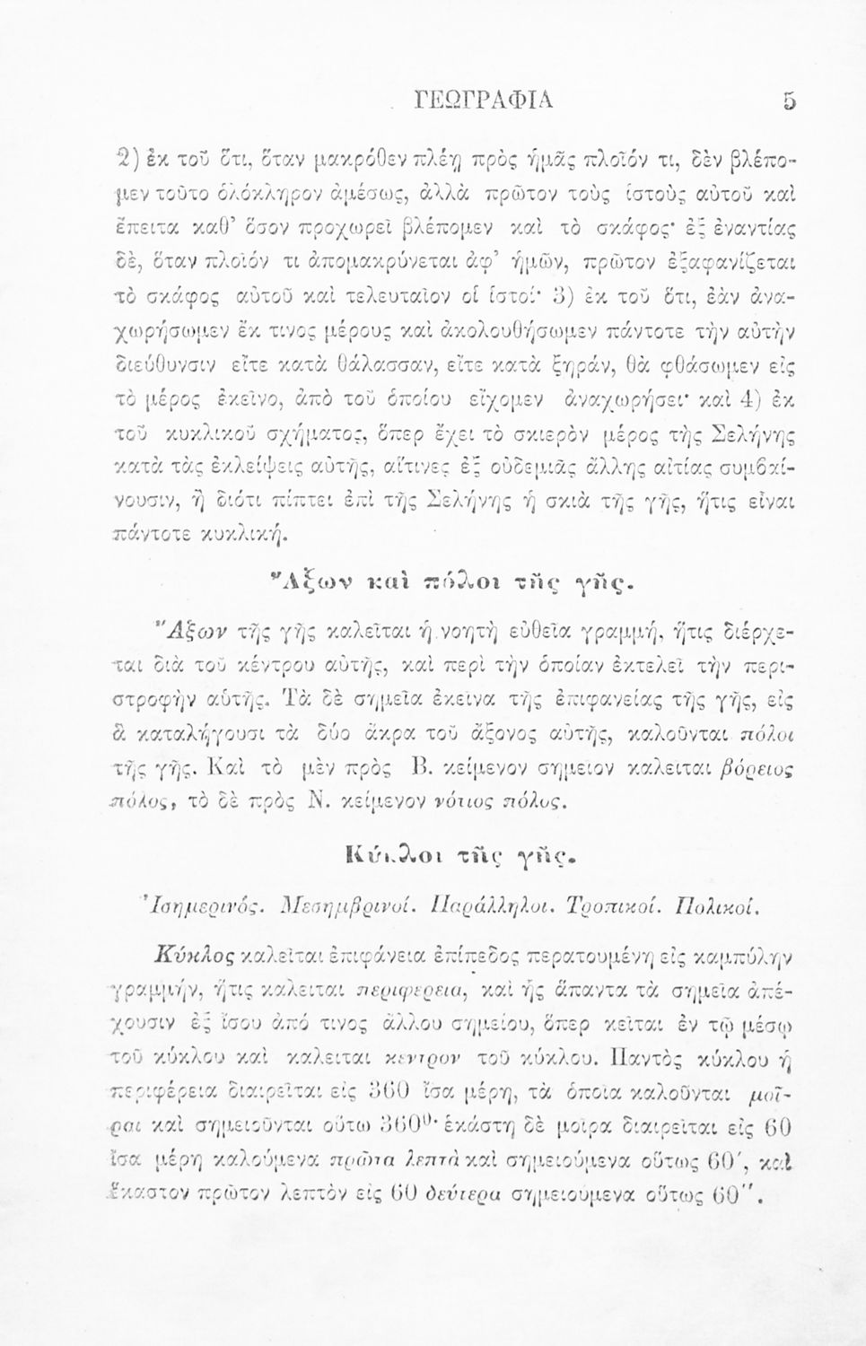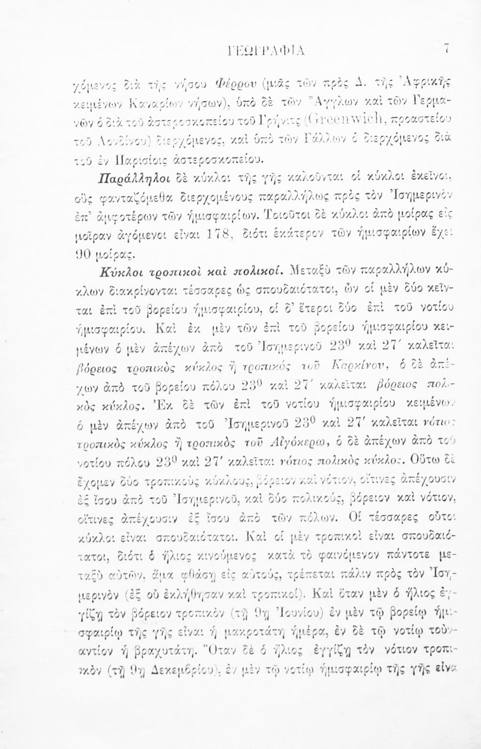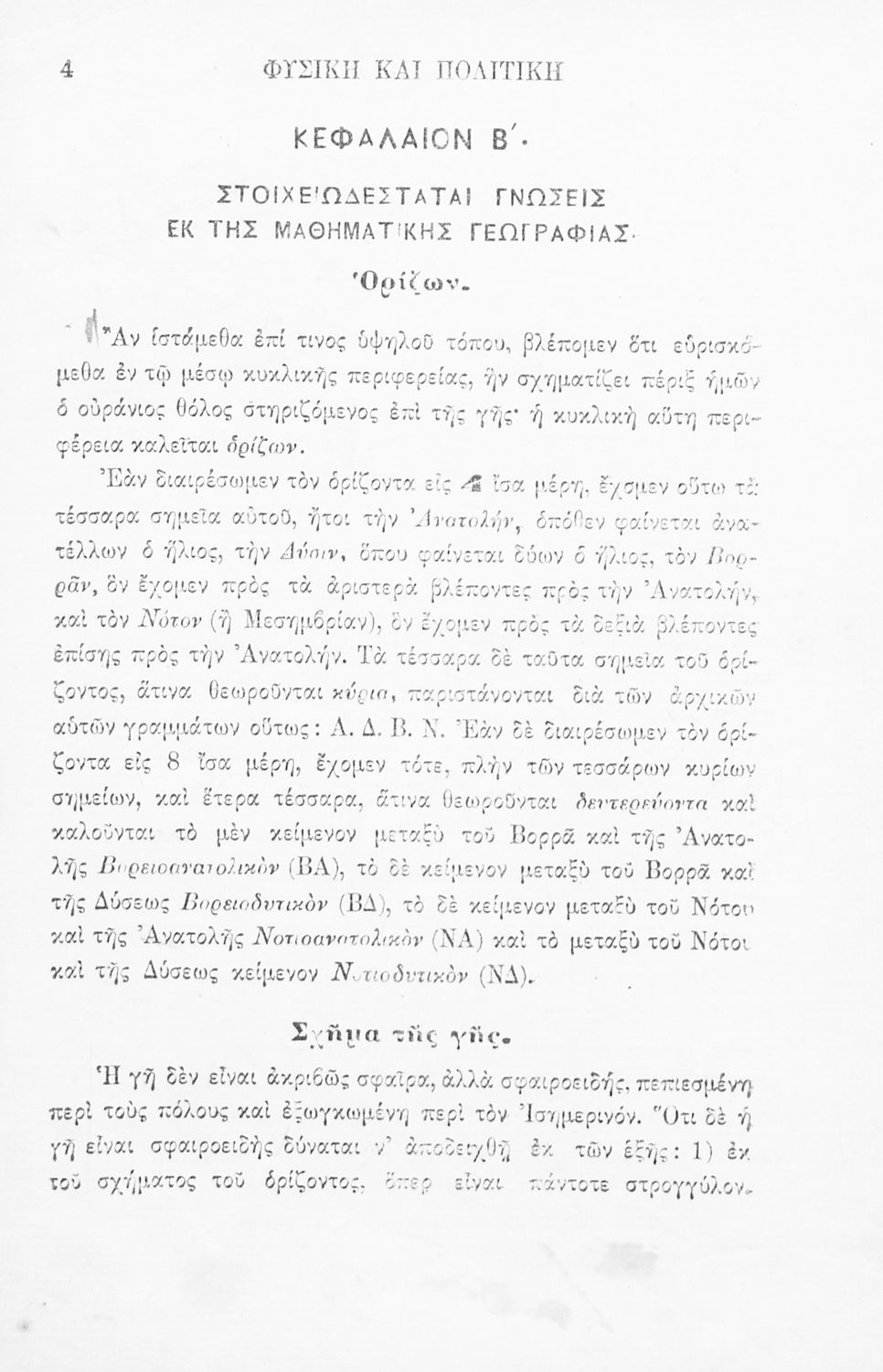 Πρόκειται για σχολικό εγχειρίδιο το οποίο προοριζόταν για τη διδασκαλία του μαθήματος της φυσικής και πολιτικής γεωγραφία της Ασίας, Αφρικής, Αμερικής και Αυστραλίας στην Α΄ τάξη των Ελληνικών Σχολείων. Φέρει λίγες προσωπικές σημειώσεις και σκίτσα του μαθητή, το ενδεικτικό βιβλιόσημο γνησιότητας, καθώς και την ένδειξη Βασίλειον της Ελλάδας.