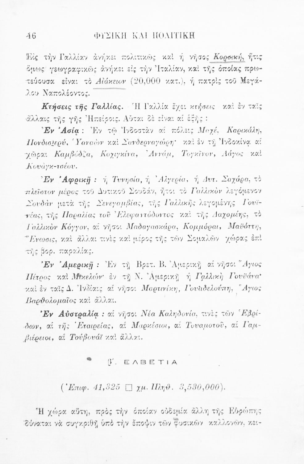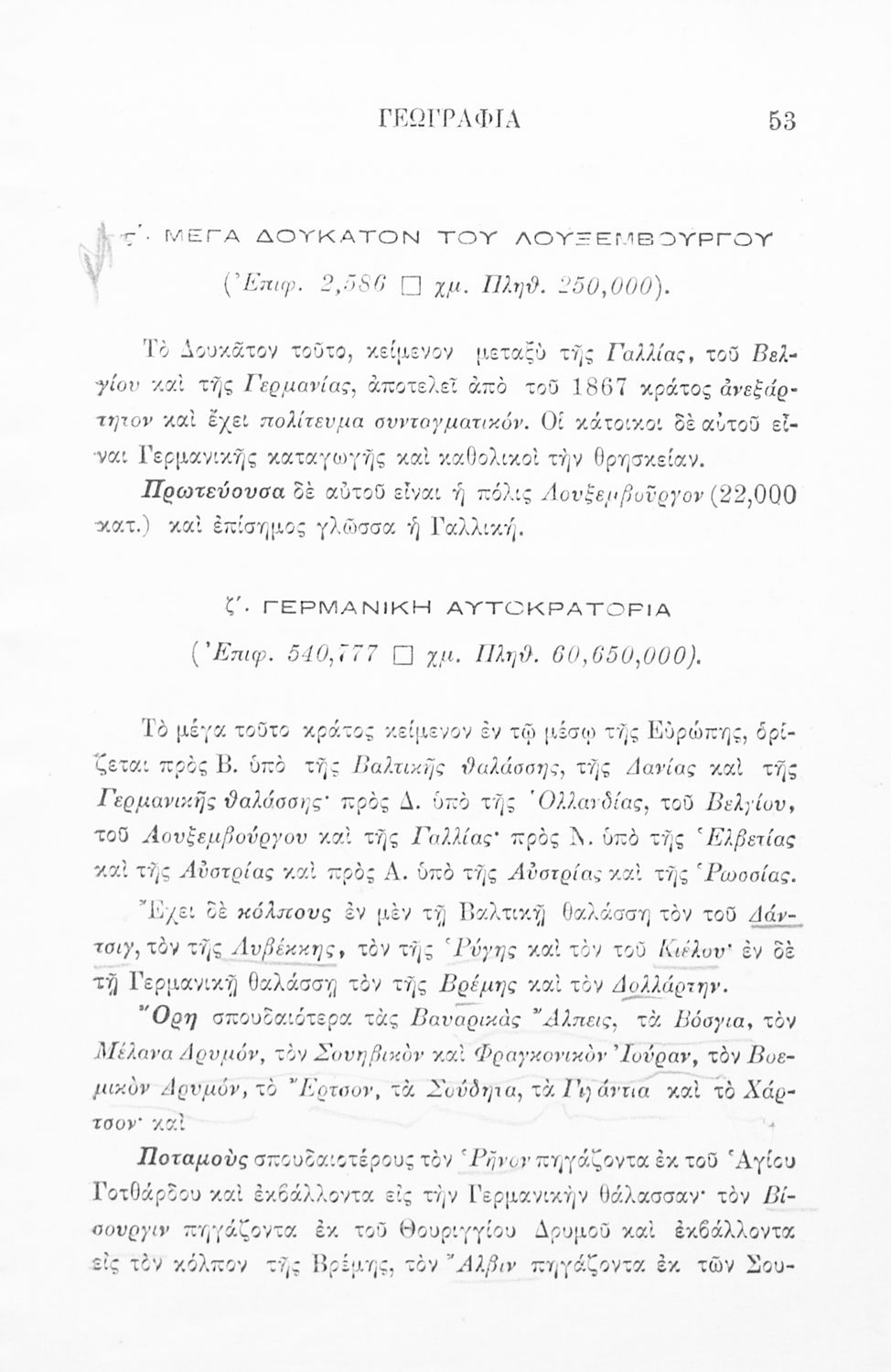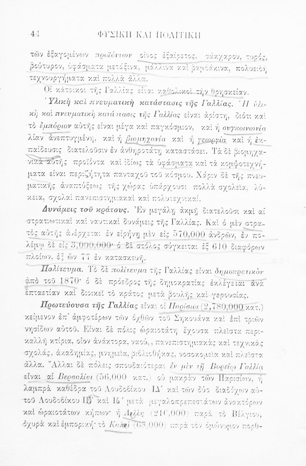 Πρόκειται για σχολικό εγχειρίδιο το οποίο προοριζόταν για τη διδασκαλία του μαθήματος της φυσικής και πολιτικής γεωγραφία της Ευρώπης, πλην της Ελλάδας, στη Β΄ τάξη των Ελληνικών Σχολείων. Φέρει λίγες προσωπικές σημειώσεις του μαθητή, καθώς και το ενδεικτικό βιβλιόσημο γνησιότητας