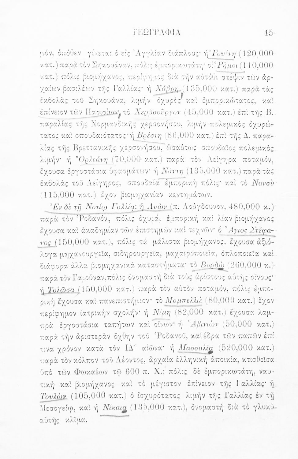 Βαθμίδα εκπαίδευσης: Δευτεροβάθμια Τάξη: Β' Ελληνικού Σχολείου Μάθημα: Γεωγραφία Γλώσσα: Καθαρεύουσα Παρουσίαση περιεχομένου: Πρόκειται για σχολικό εγχειρίδιο το οποίο προοριζόταν για τη διδασκαλία του μαθήματος της φυσικής και πολιτικής γεωγραφία της Ευρώπης, πλην της Ελλάδας, στη Β΄ τάξη των Ελληνικών Σχολείων. Φέρει λίγες προσωπικές σημειώσεις του μαθητή, καθώς και το ενδεικτικό βιβλιόσημο γνησιότητας |