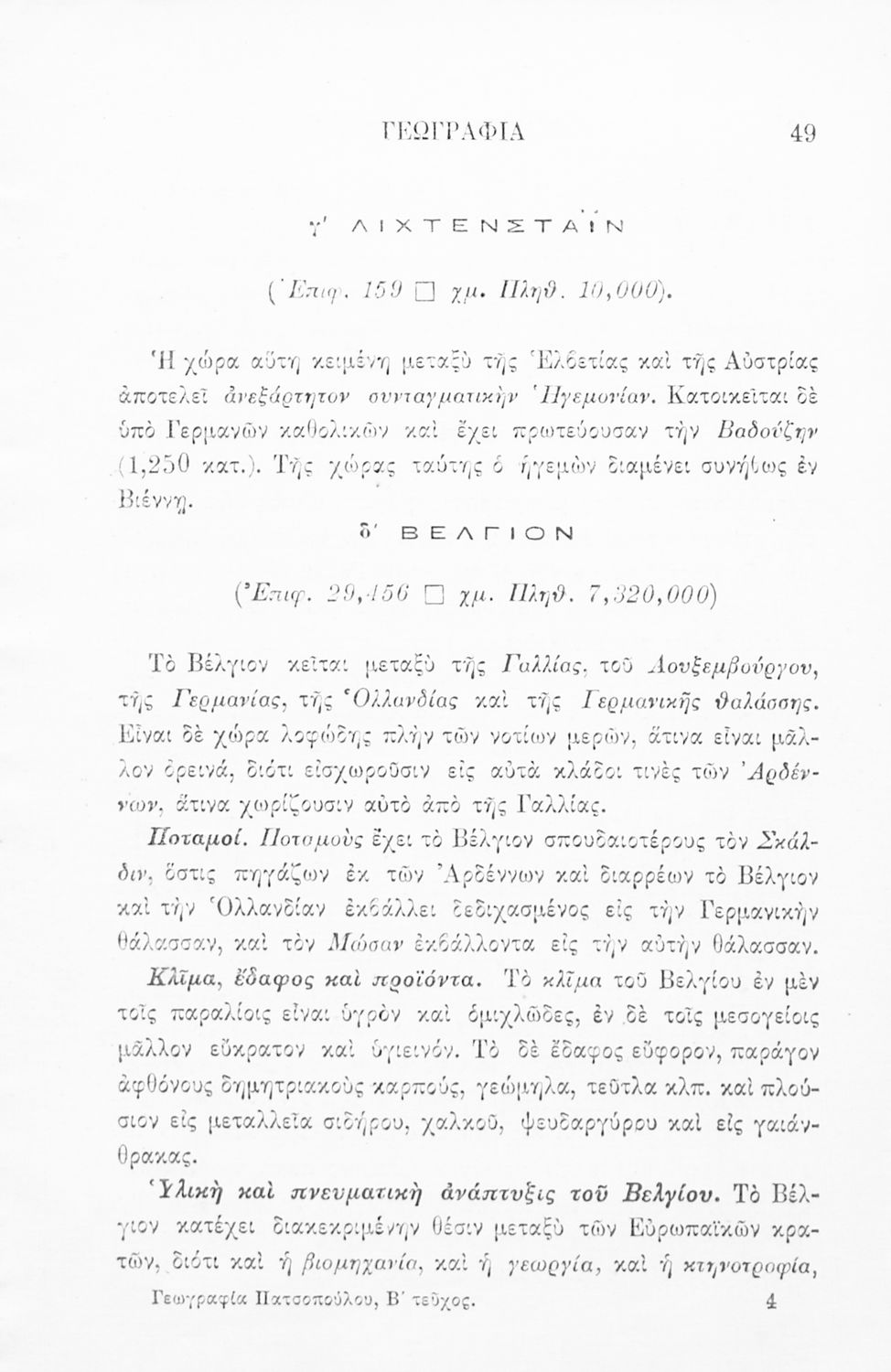 LDR 01383 2200205 4500 035 ## _a02-02156 040 ## _aΕλληνικό Λογοτεχνικό και Ιστορικό Αρχείο 041 ## _ael 100 ## _aΔημήτριος Πατσόπουλος 110 ## _a1911 ΠΑΤ 245 0# _aΦυσική και πολιτική γεωγραφία της Ευρώπης πλην του βασιλείου της Ελλάδος : διά την Β΄ τάξιν των Ελληνικών Σχολείων 260 ## _aΑθήνα _bΔ.Χ. Τερζόπουλος _c1911 300 ## _a100 520 ## _aΠρόκειται για σχολικό εγχειρίδιο το οποίο προοριζόταν για τη διδασκαλία του μαθήματος της φυσικής και πολιτικής γεωγραφία της Ευρώπης, πλην της Ελλάδας, στη Β΄ τάξη των Ελληνικών Σχολείων. Φέρει λίγες προσωπικές σημειώσεις του μαθητή, καθώς και το ενδεικτικό βιβλιόσημο γνησιότητας 521 ## _aΒ' Ελληνικού Σχολείου 522 ## _aΕλλάδα 546 ## _aΚαθαρεύουσα 563 ## _aΣκληρό Εξώφυλλο 583 ## _a11300/13-8-1909 650 #4 _aΓεωγραφία _aΕυρώπη μέση-νότιος-βόρειος