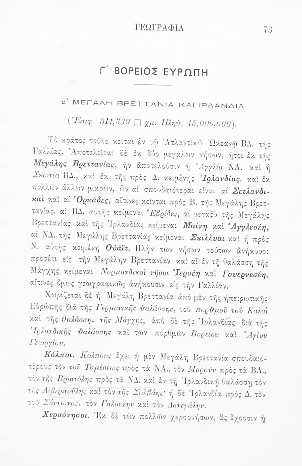 Βαθμίδα εκπαίδευσης: Δευτεροβάθμια Τάξη: Β' Ελληνικού Σχολείου Μάθημα: Γεωγραφία Γλώσσα: Καθαρεύουσα Παρουσίαση περιεχομένου: Πρόκειται για σχολικό εγχειρίδιο το οποίο προοριζόταν για τη διδασκαλία του μαθήματος της φυσικής και πολιτικής γεωγραφία της Ευρώπης, πλην της Ελλάδας, στη Β΄ τάξη των Ελληνικών Σχολείων. Φέρει λίγες προσωπικές σημειώσεις του μαθητή, καθώς και το ενδεικτικό βιβλιόσημο γνησιότητας |