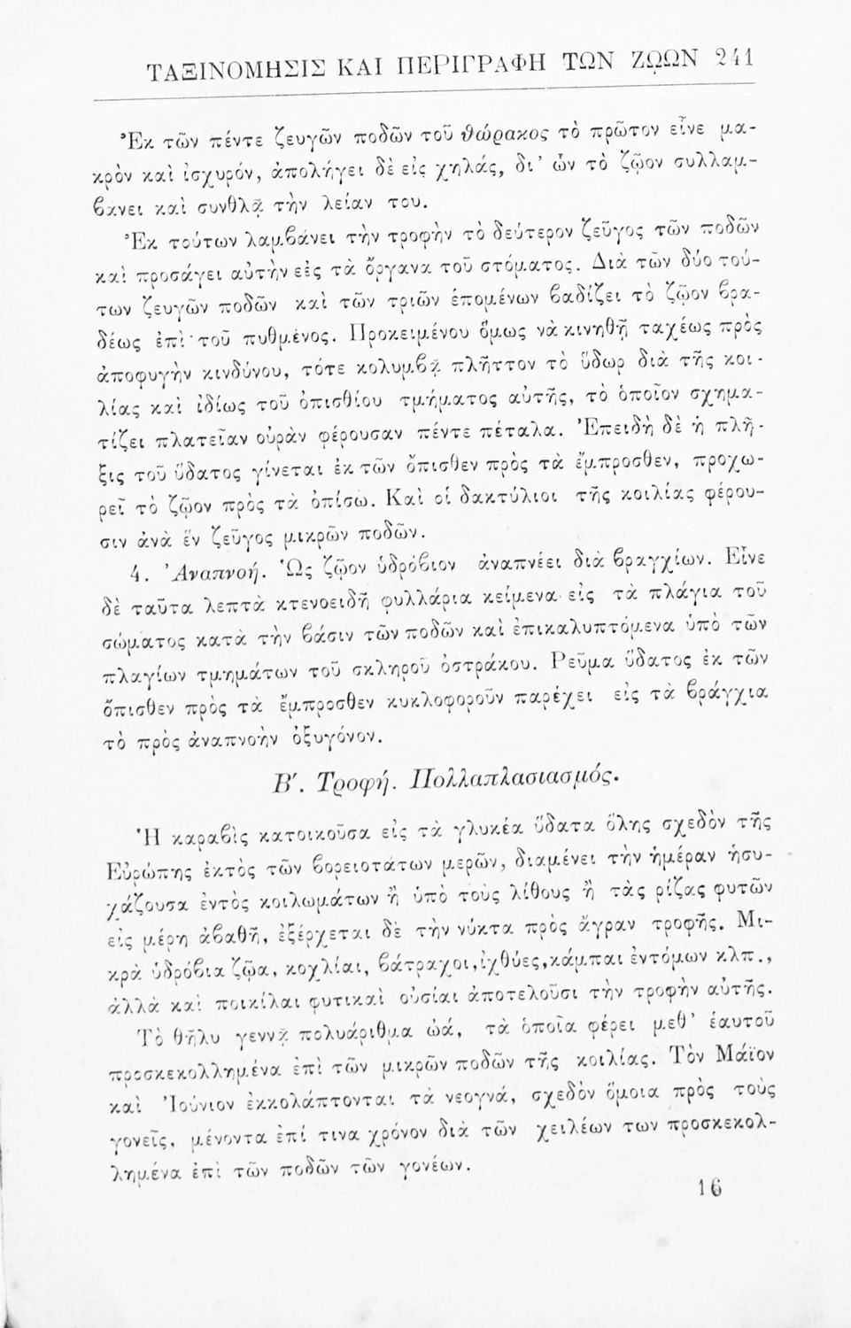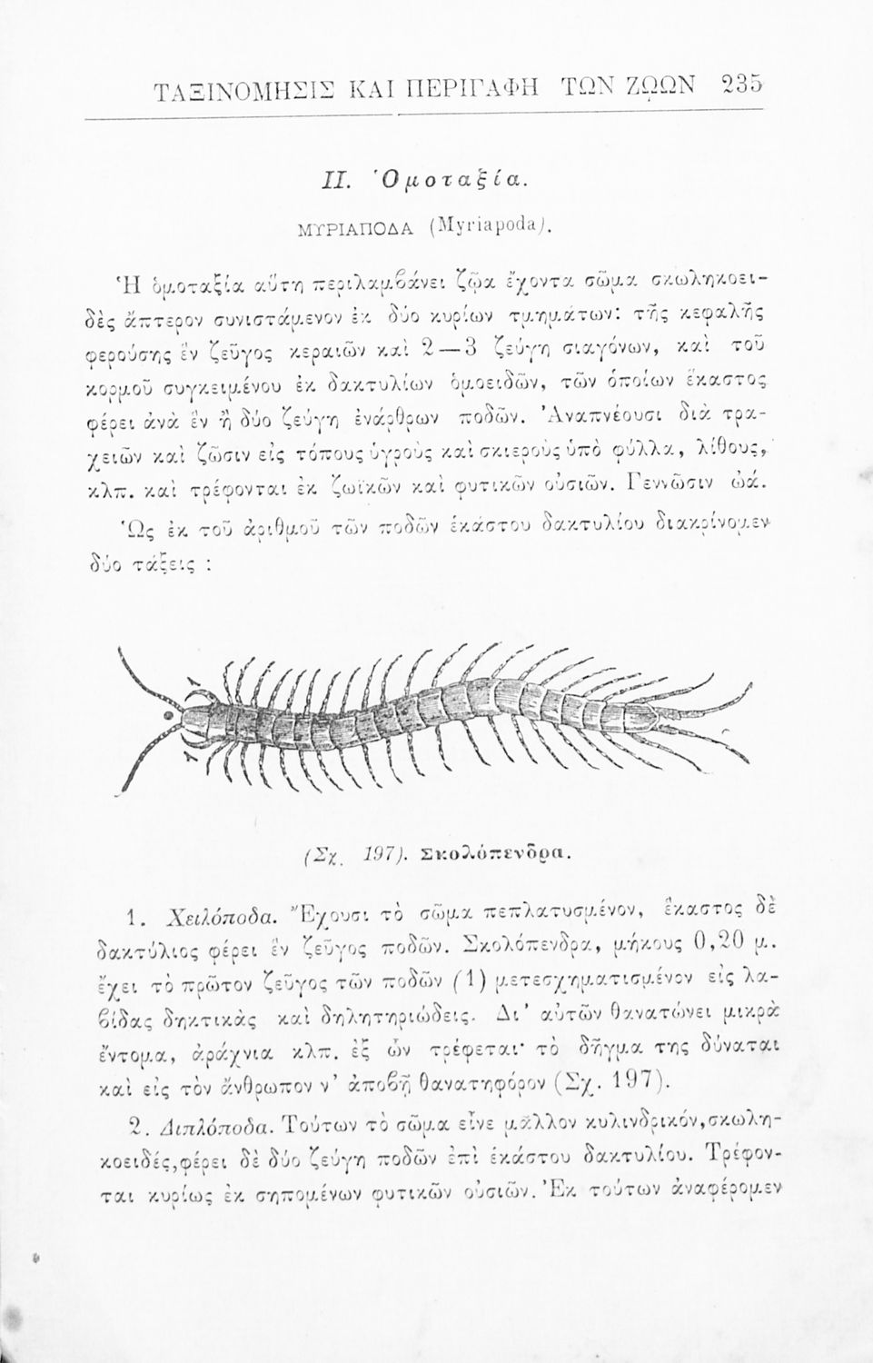 Σχολικό εγχειρίδιο Ζωολογίας για τα Γυμνάσια, τα Παρθεναγωγεία και τα Διδασκαλεία που εστιάζει στην ανθρώπινη φυσιολογία και παρουσιάζει τα διάφορα ζώα ανάλογα με την συνομοταξία στην οποία ανήκουν.