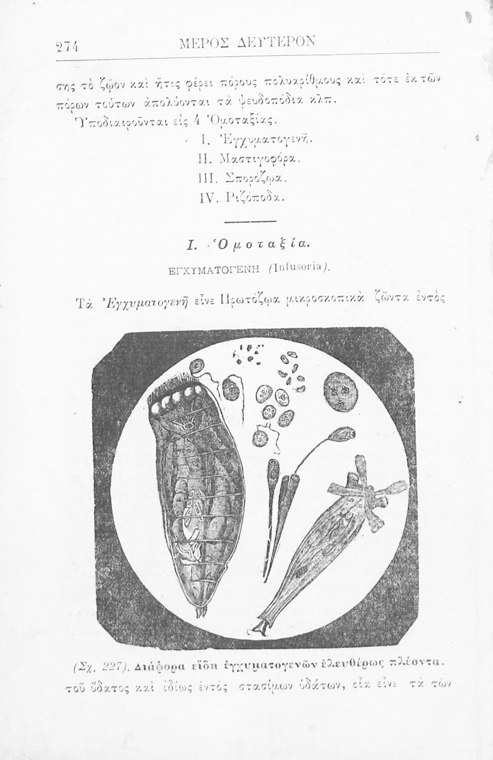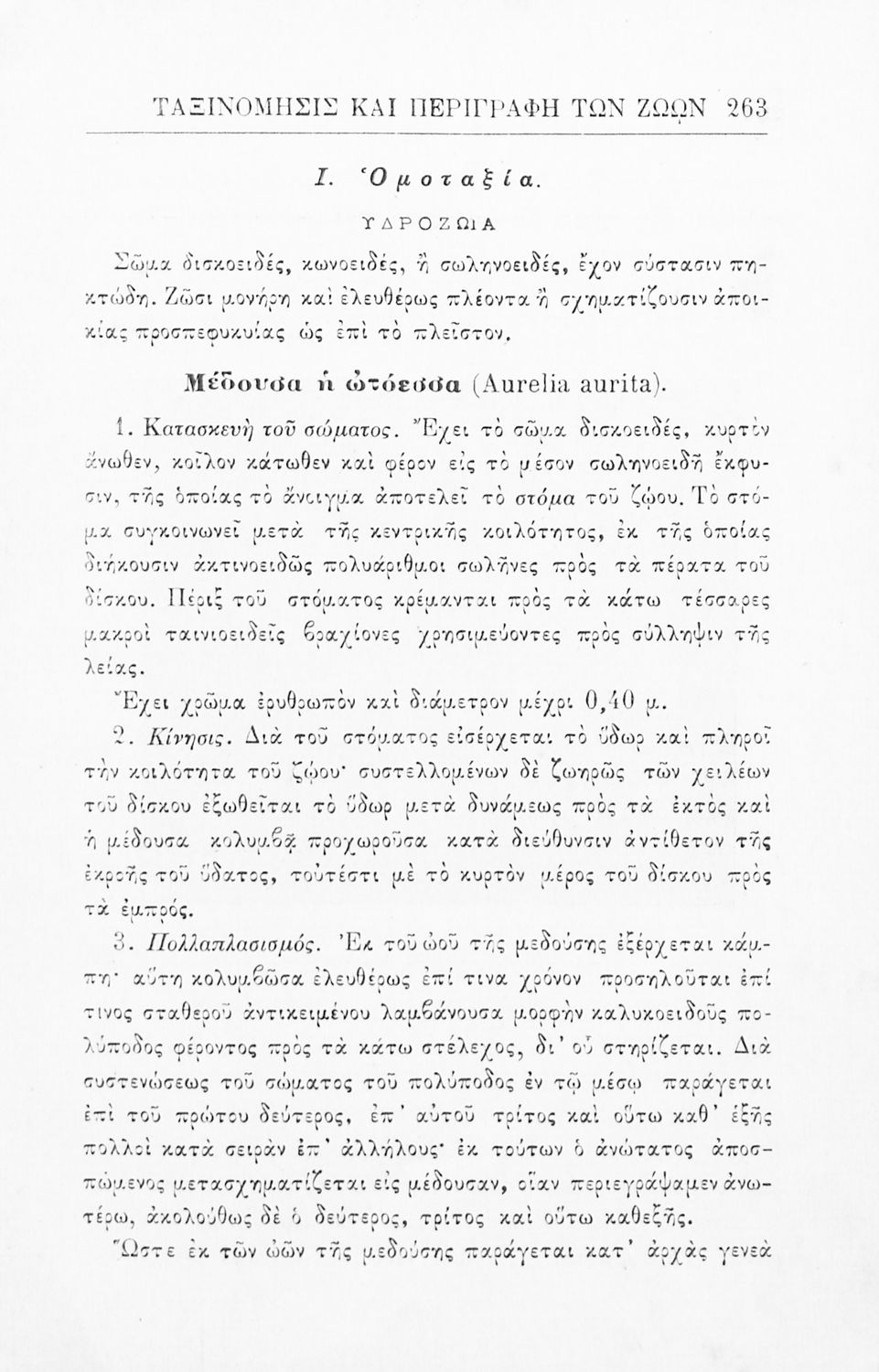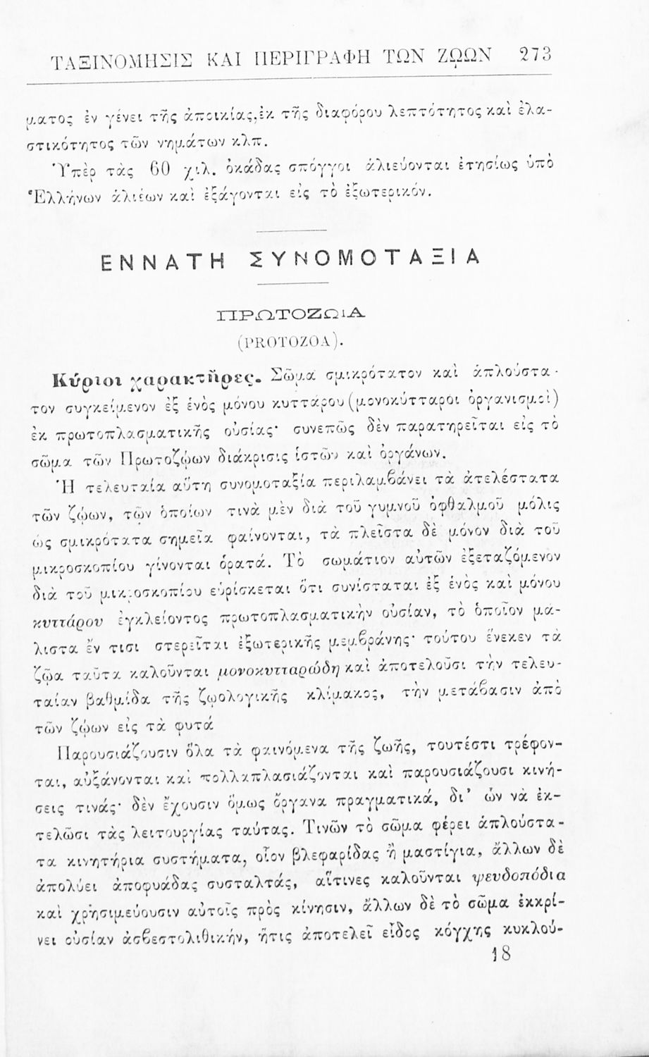 Σχολικό εγχειρίδιο Ζωολογίας για τα Γυμνάσια, τα Παρθεναγωγεία και τα Διδασκαλεία που εστιάζει στην ανθρώπινη φυσιολογία και παρουσιάζει τα διάφορα ζώα ανάλογα με την συνομοταξία στην οποία ανήκουν.