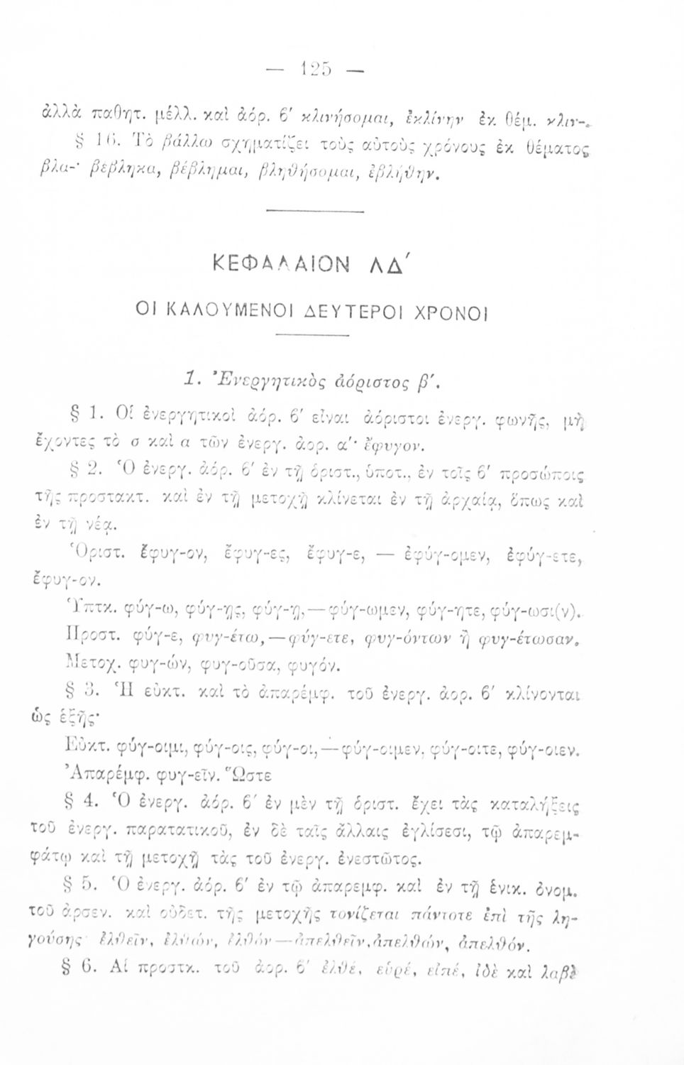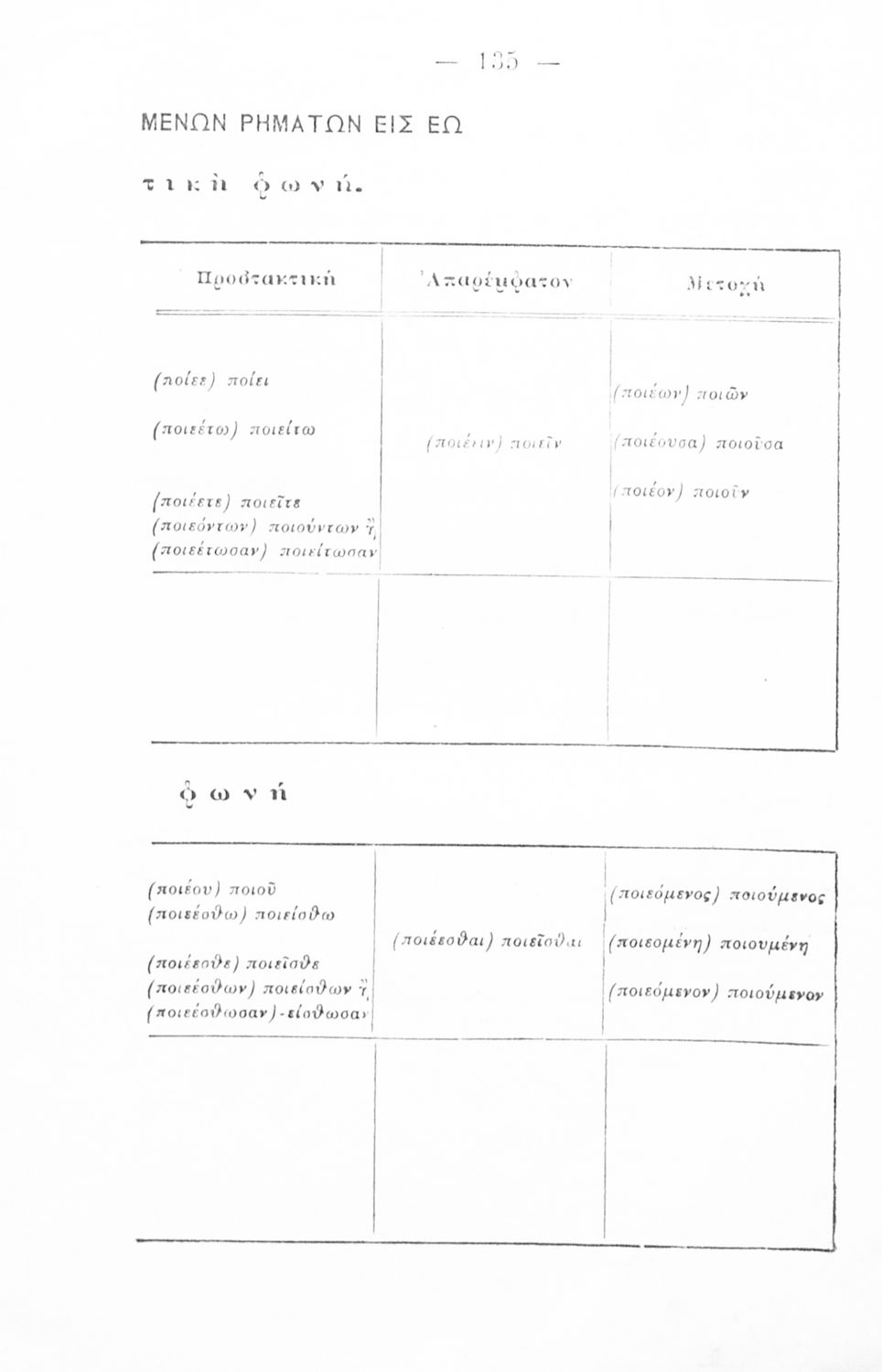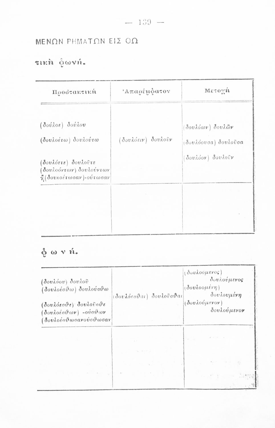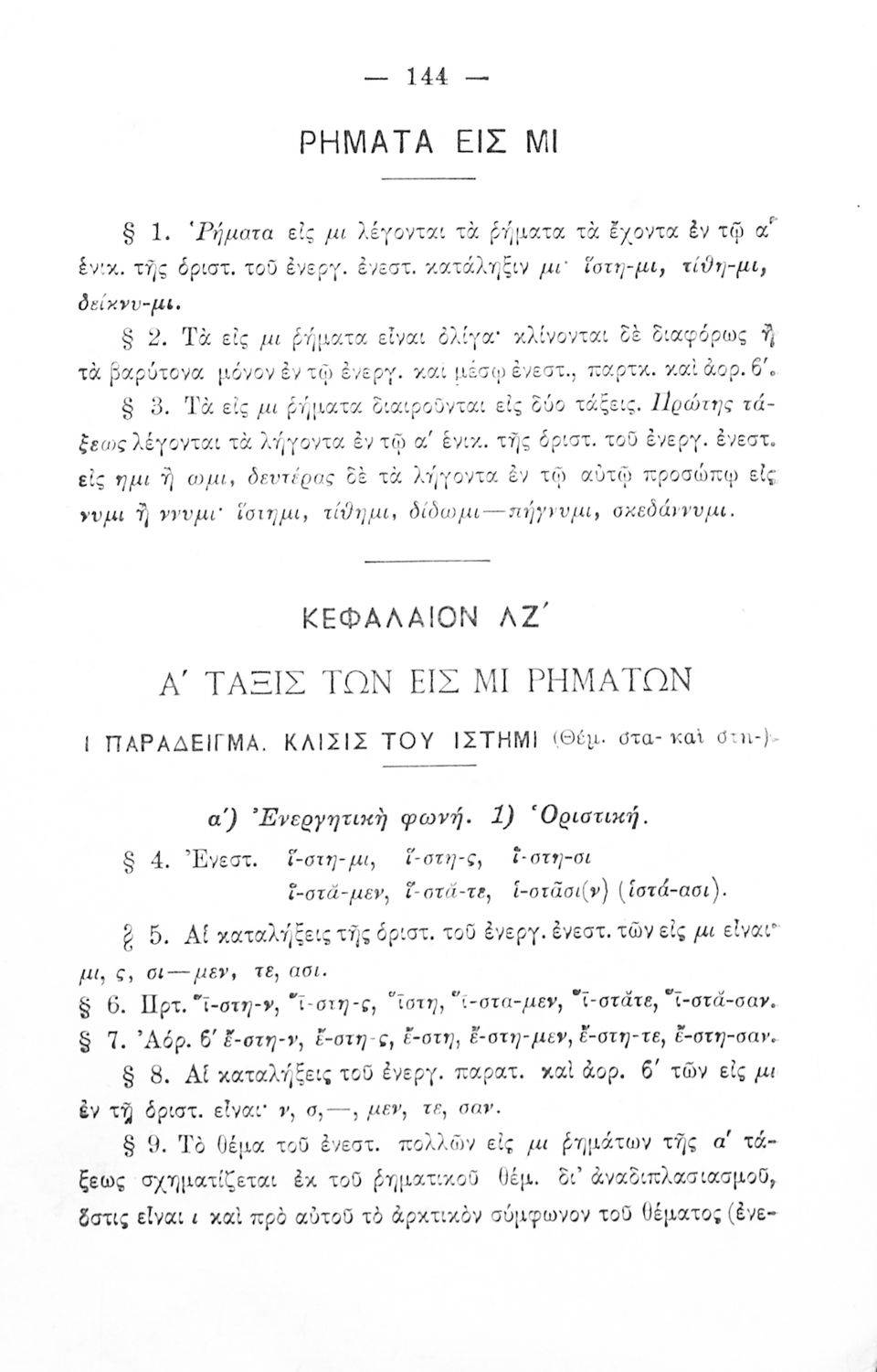 Σχολικό εγχειρίδιο Αρχαίων Ελληνικών Γυμνασίου που περιλαμβάνει τη γραμματική της αρχαίας ελληνικής και είναι χωρισμένο σε φθογγολογικό και τυπολογικό μέρος Περιέχει και κατάλογο ανωμάλων ρημάτων.