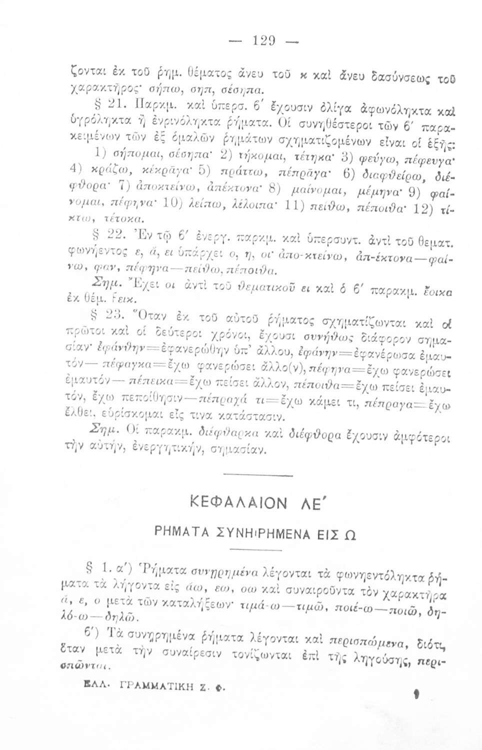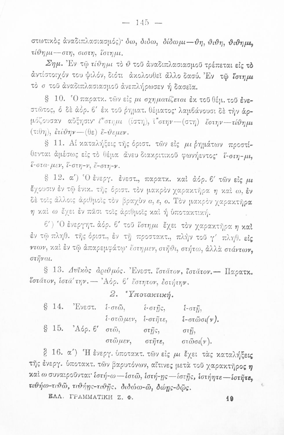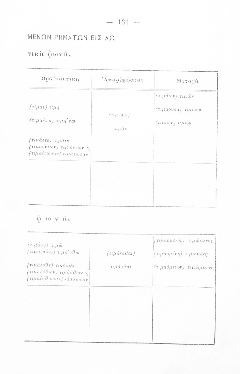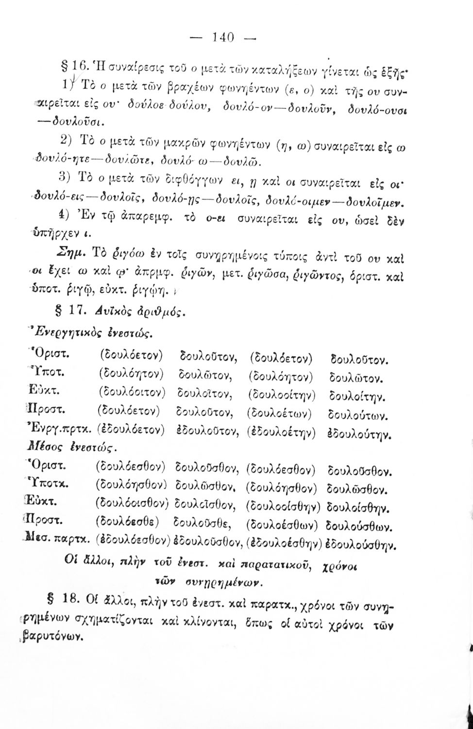 Σχολικό εγχειρίδιο Αρχαίων Ελληνικών Γυμνασίου που περιλαμβάνει τη γραμματική της αρχαίας ελληνικής και είναι χωρισμένο σε φθογγολογικό και τυπολογικό μέρος Περιέχει και κατάλογο ανωμάλων ρημάτων.